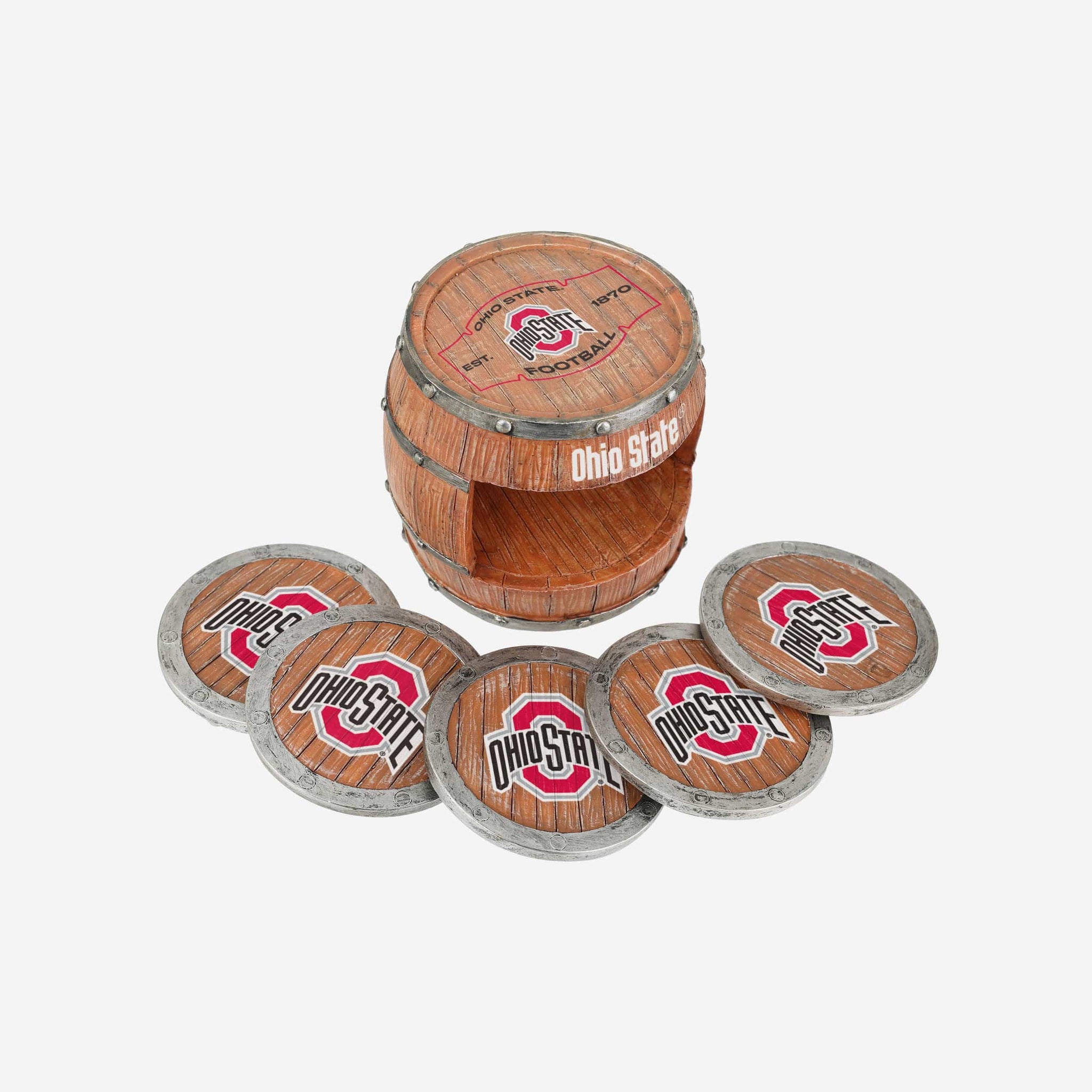 Championship rings? Yay! Unsightly rings on the coffee table? Boo! Break out the beverages worry-free and get ready for every watch party with this Ohio State Buckeyes 5 Pack Barrel Coaster Set.