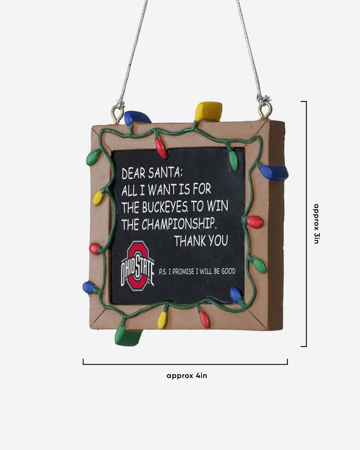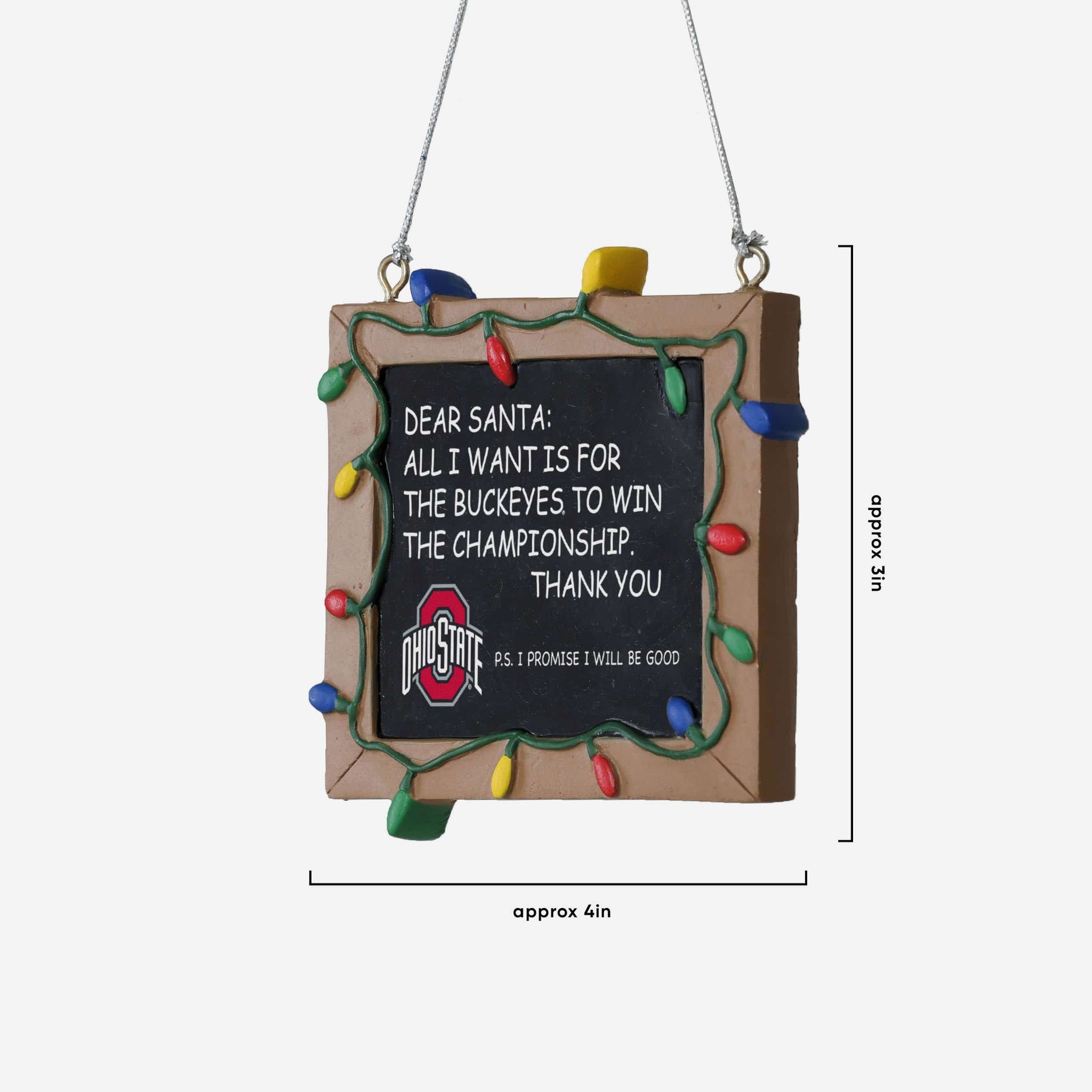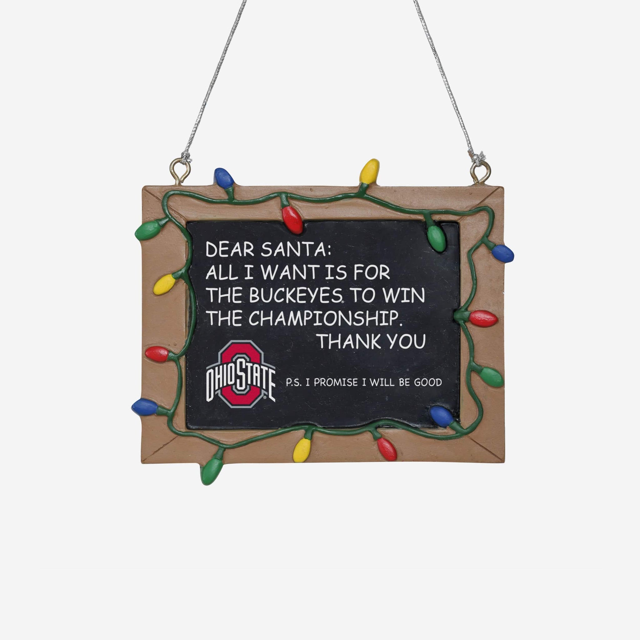 So, you made your list and sent it to jolly ol' Fanta Claus, asking him for a championship. But sometimes letters can get lost in the mail. Just in case, put this Ohio State Buckeyes Resin Chalkboard Sign Ornament on your tree to let him know how good you've been this year, and that all you want for the holidays is a trophy.