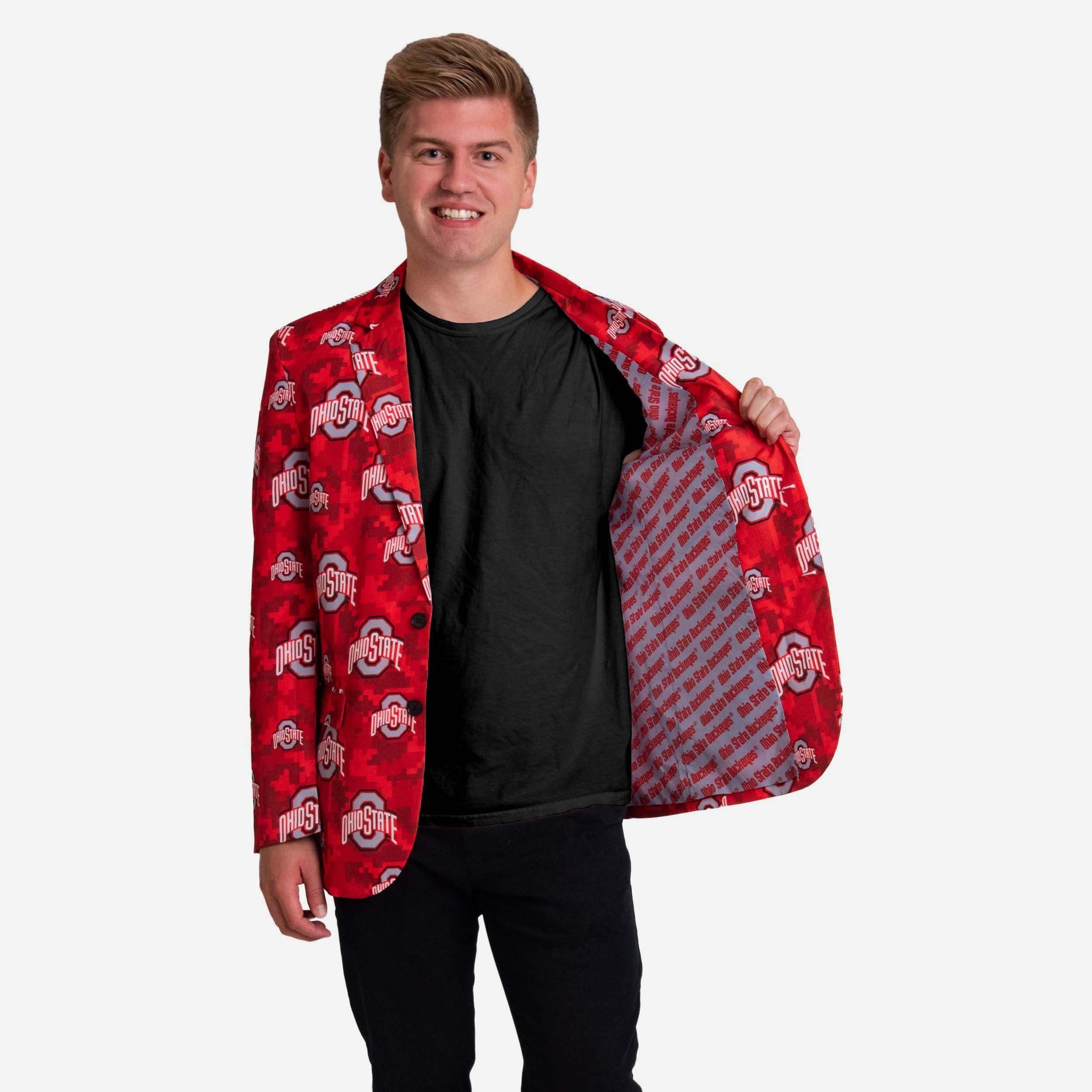 This Ohio State Buckeyes Digital Camo Suit Jacket may feature a team-colored camouflage design, but we promise it won't hide your legendary fandom. Nothing can hide that kind of bold team spirit.