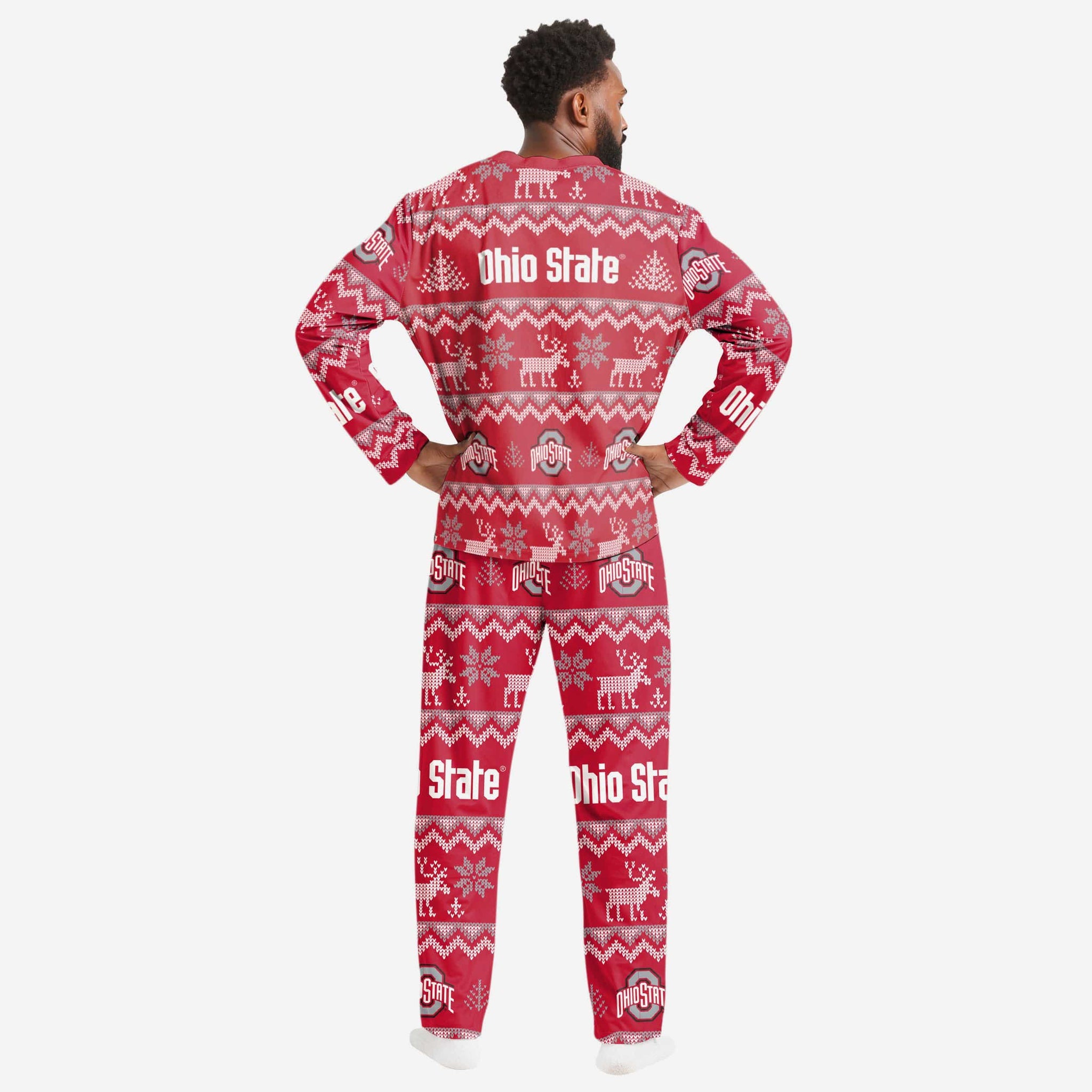 Get some matching family pajamas and dress to impress this holiday season! You won't want to miss these men's team pajamas! These men's PJ's are comfortable and show off your team spirit in the form of some sweet men's jammies. Introducing the Ohio State Buckeyes Ugly Pattern Family Holiday Pajamas! Don't forget to take your holiday photo with the whole family wearing matching Christmas pajamas!