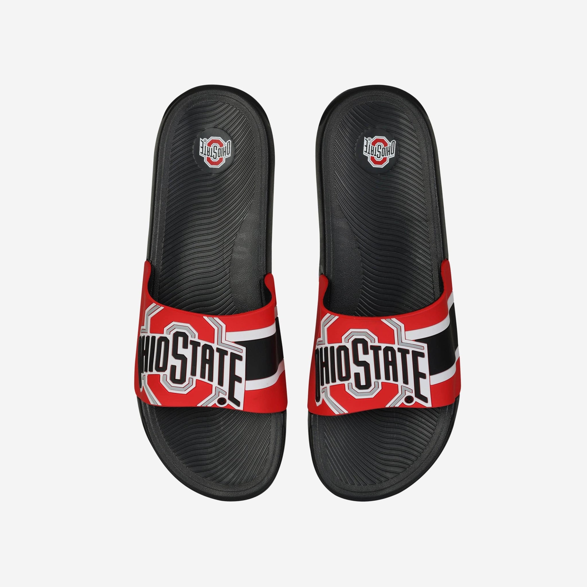 These Ohio State Buckeyes Striped Big Logo Raised Slides give a whole new meaning to the idea of putting some pep in your step.