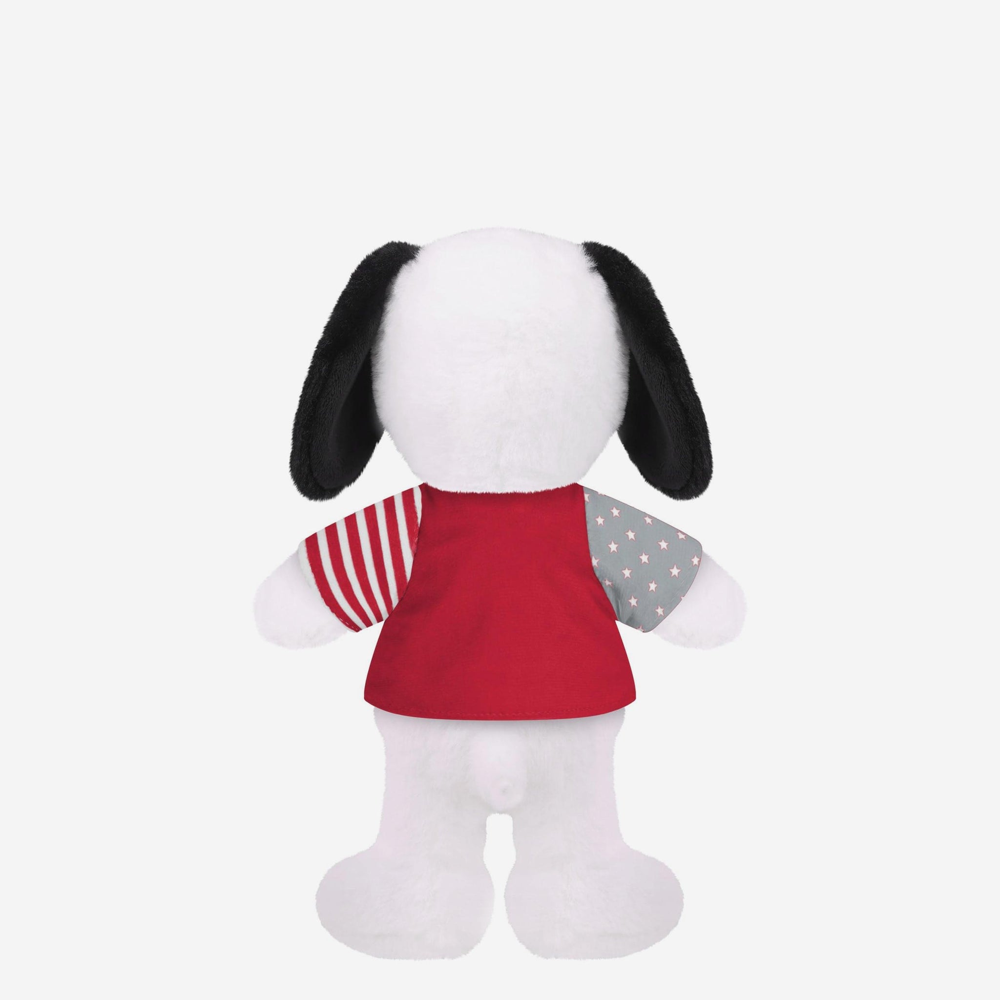 • Plush Snoopy wearing a team jersey with USA flag-inspired design details