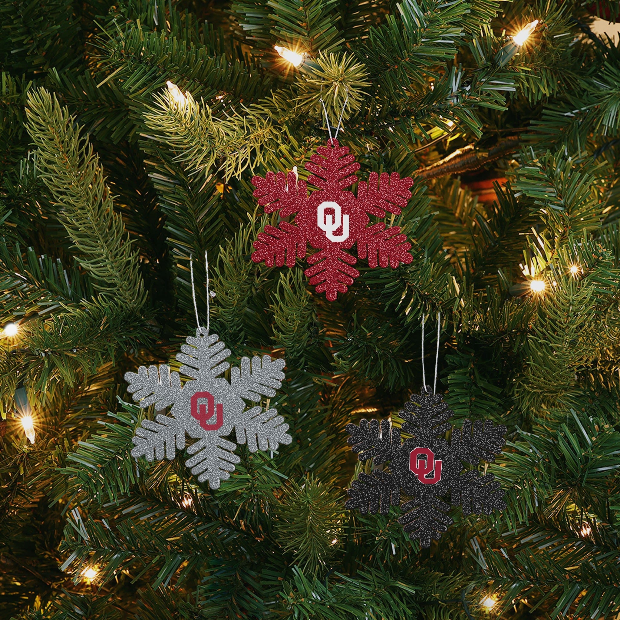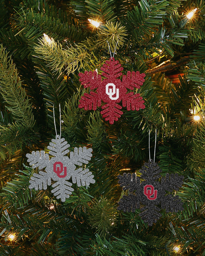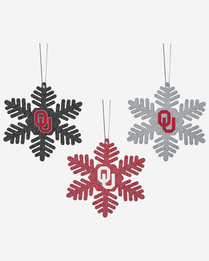 Oklahoma Sooners 3 Pack Metal Glitter Snowflake Ornament FOCO - FOCO.com