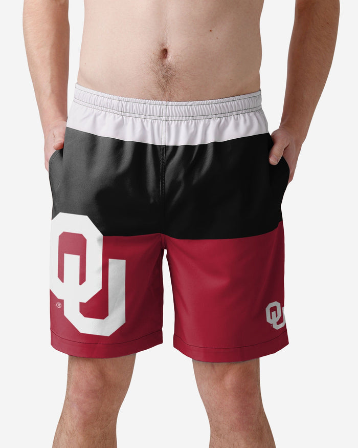 Need a break from the heat of gameday competition? Cool off by going for a dip in these Oklahoma Sooners 3 Stripe Big Logo Traditional Swimming Trunks.