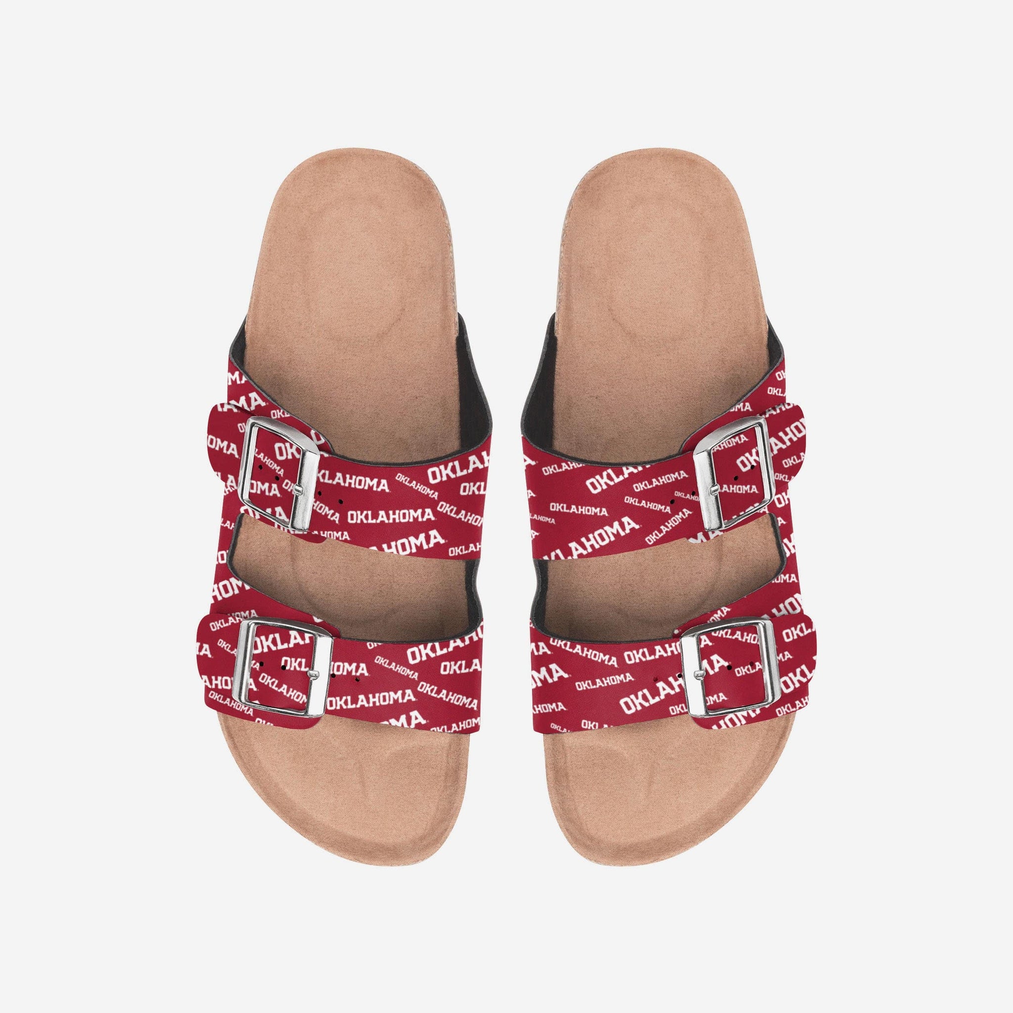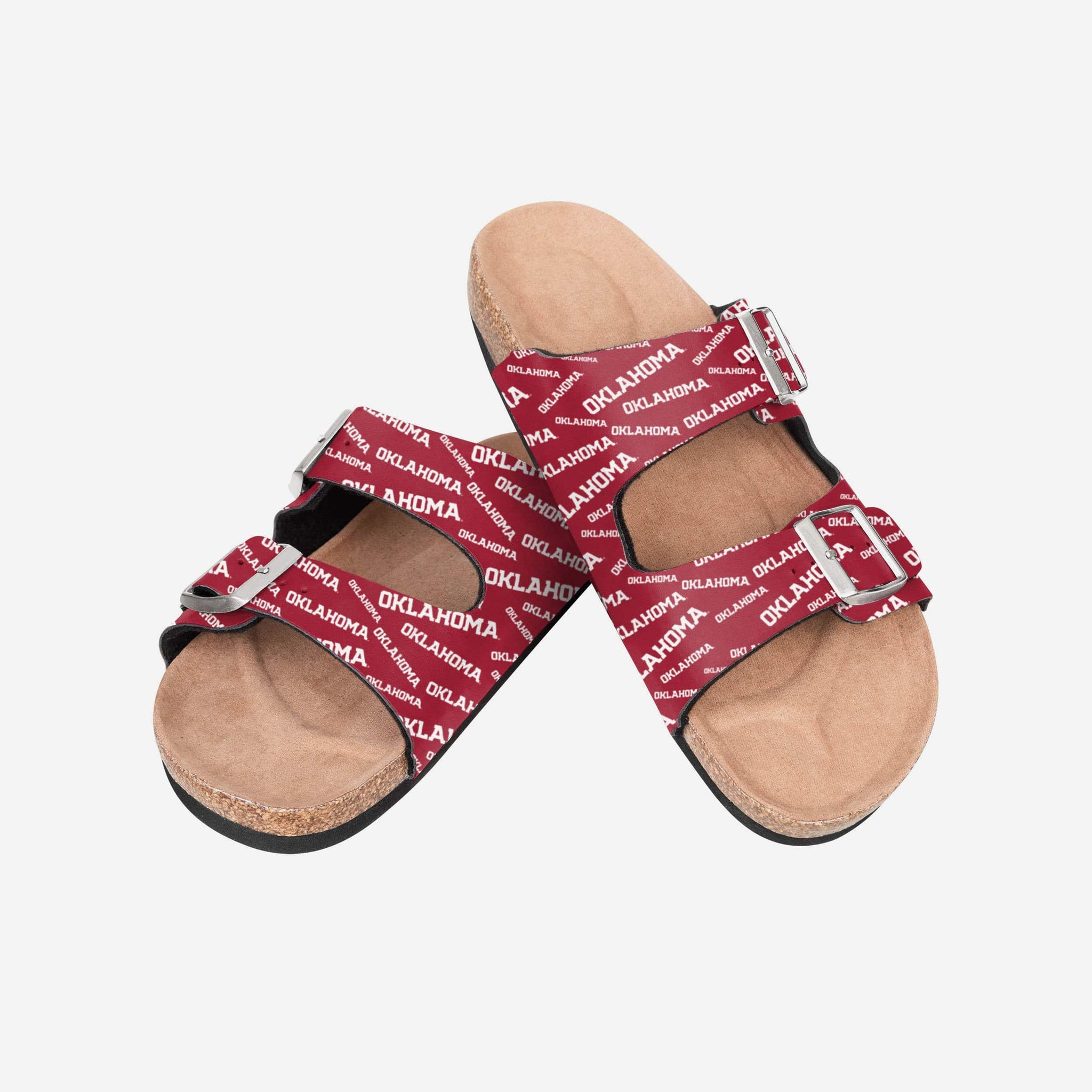 Double your fun. Double your fan. With the Oklahoma Sooners Women's Mini Print Double Buckle Sandals, you can step in style, and not have to worry about getting sand in your shoes during your next beach excursion.