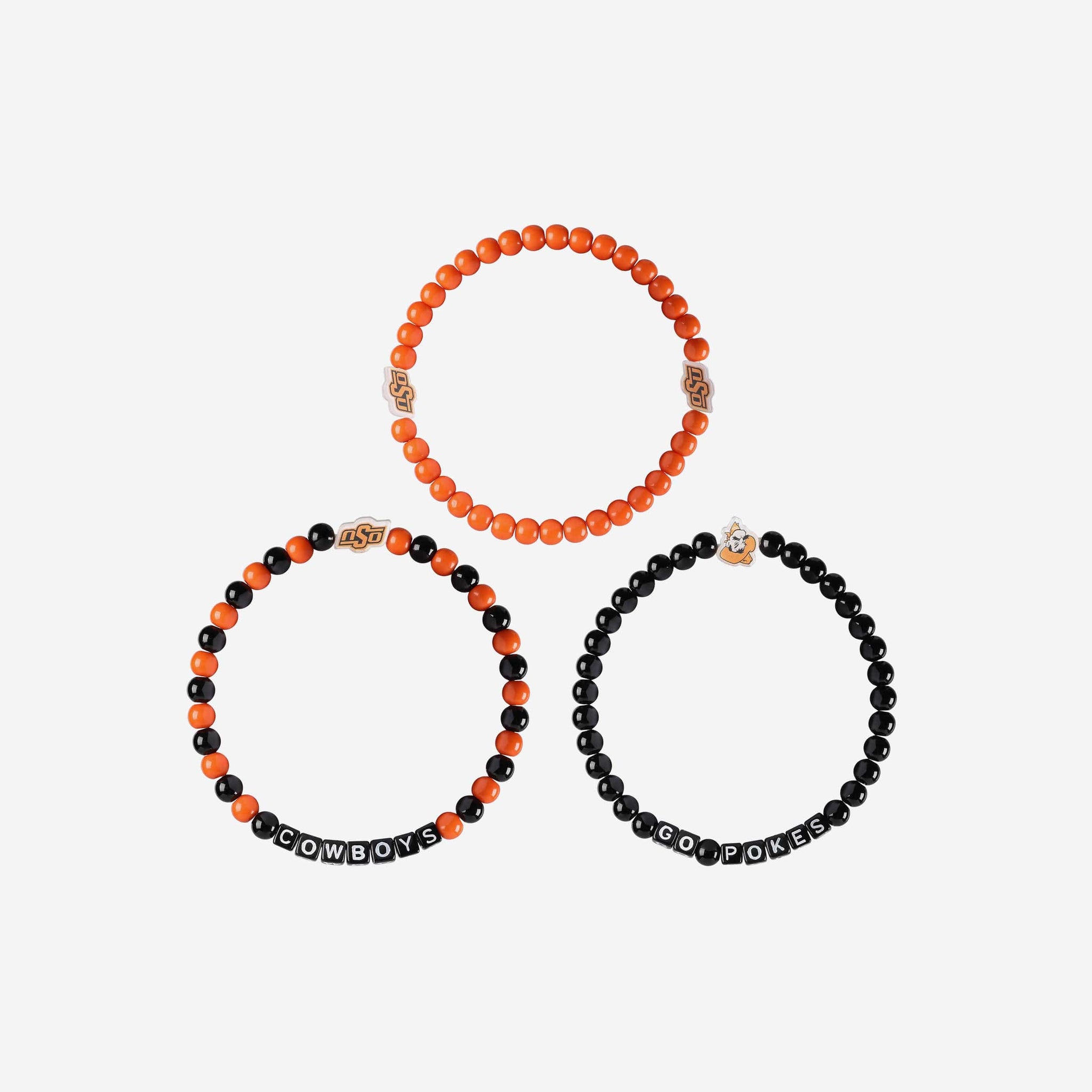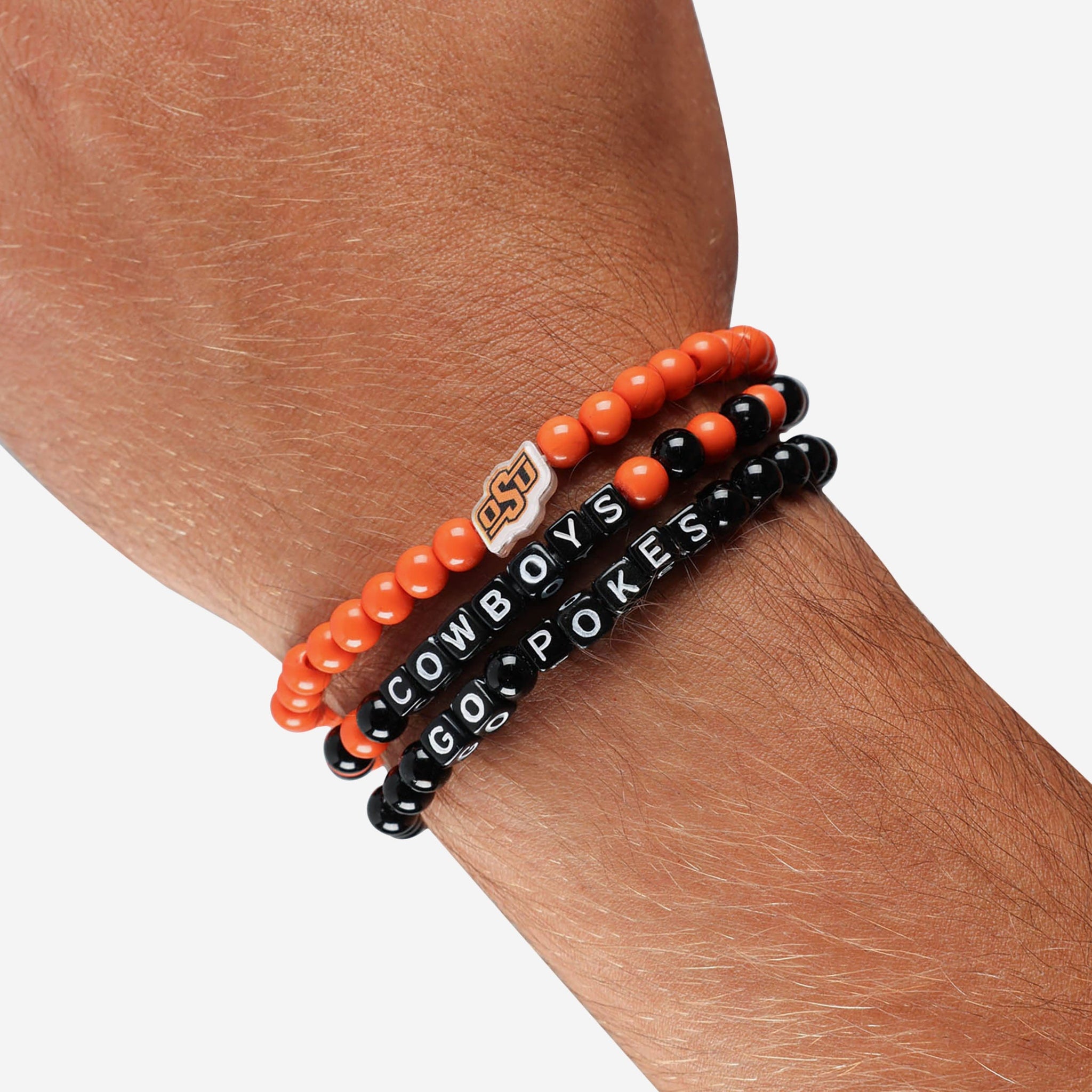 A whole new way to rep the team in style is here. Step up your fan fashion sense with this Oklahoma State Cowboys 3 Pack Beaded Friendship Bracelet. These matching friendship bracelets have an all-over team-colored design and team logo displays, which makes them the perfect way to show your support for the Oklahoma State Cowboys on gamedays and every day in between.
