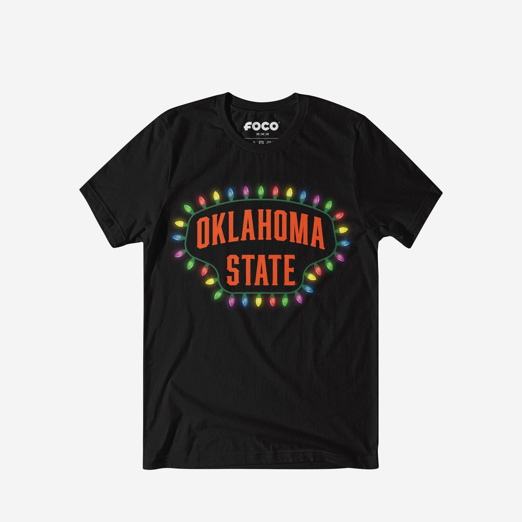 Merry, bright, and full of team spirit! Let your fandom light the way to a legendary holiday season with this Oklahoma State Cowboys Primary Logo Holiday Lights T-Shirt.