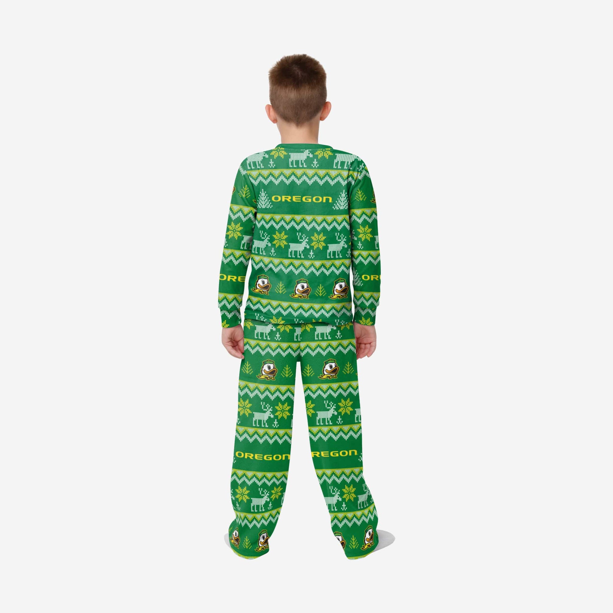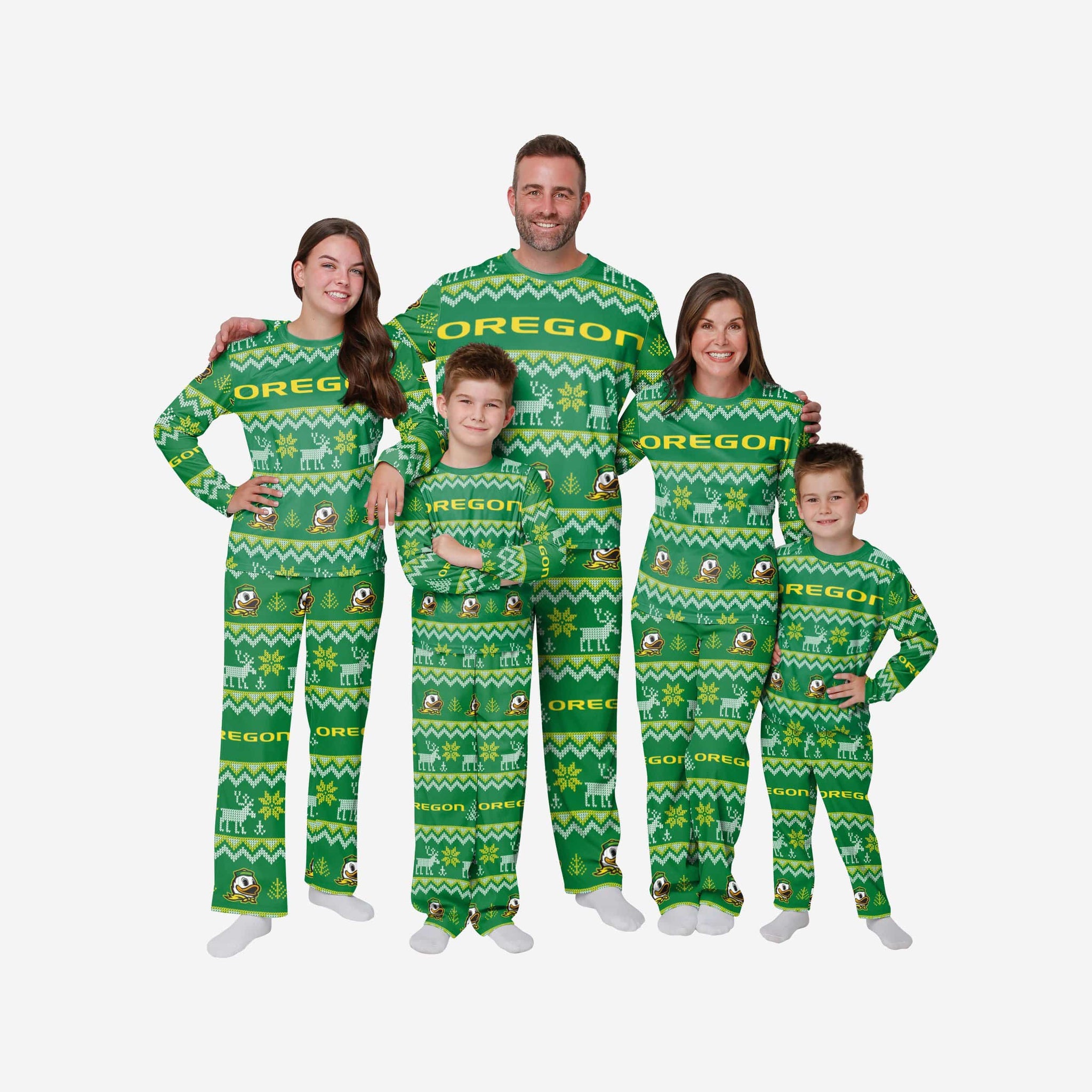Get some matching family pajamas and dress to impress this holiday season! You won't want to miss these kids' team pajamas! These youth PJ's are comfortable and show off your team spirit in the form of some sweet youth jammies. Introducing the Oregon Ducks Youth Ugly Pattern Family Holiday Pajamas! Don't forget to take your holiday photo with the whole family wearing matching Christmas pajamas!