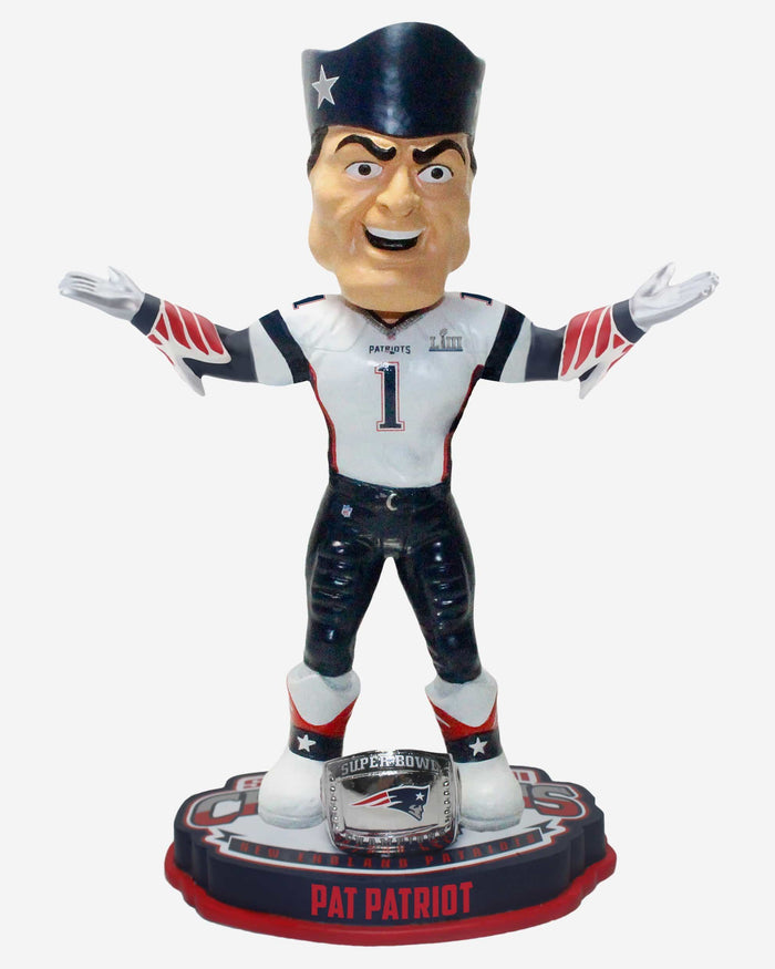 The only thing better than celebrating your team's Super Bowl victory is celebrating your team's Super Bowl victory with a Pat Patriot New England Patriots Super Bowl LIII Champions Bobblehead on your desk.
