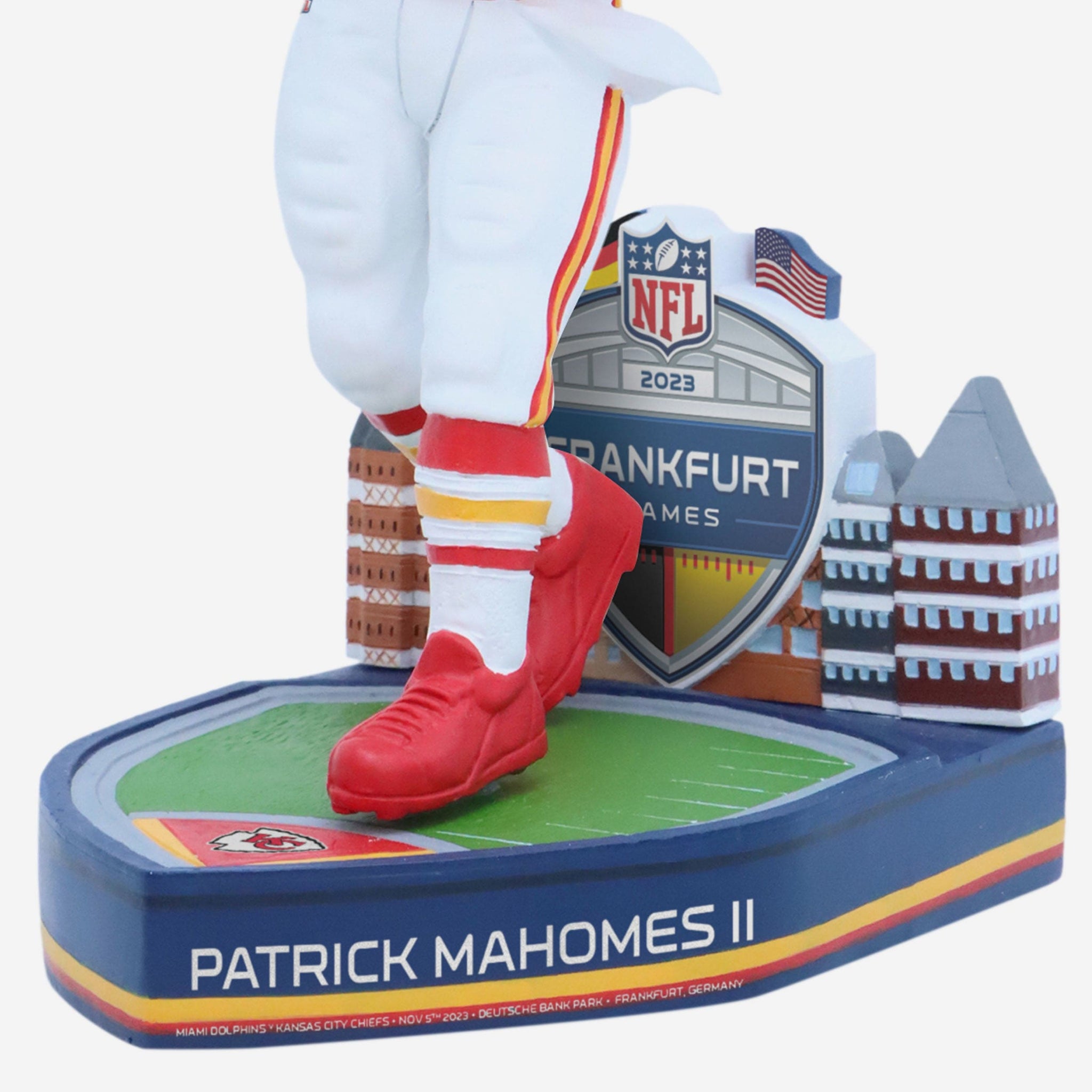 - “MIAMI DOLPHINS V KANSAS CITY CHIEFS - NOV 5TH 2023 - DEUTSCHE BANK PARK - FRANKFURT, GERMANY” text display on front of base so you'll never forget the game across the globe