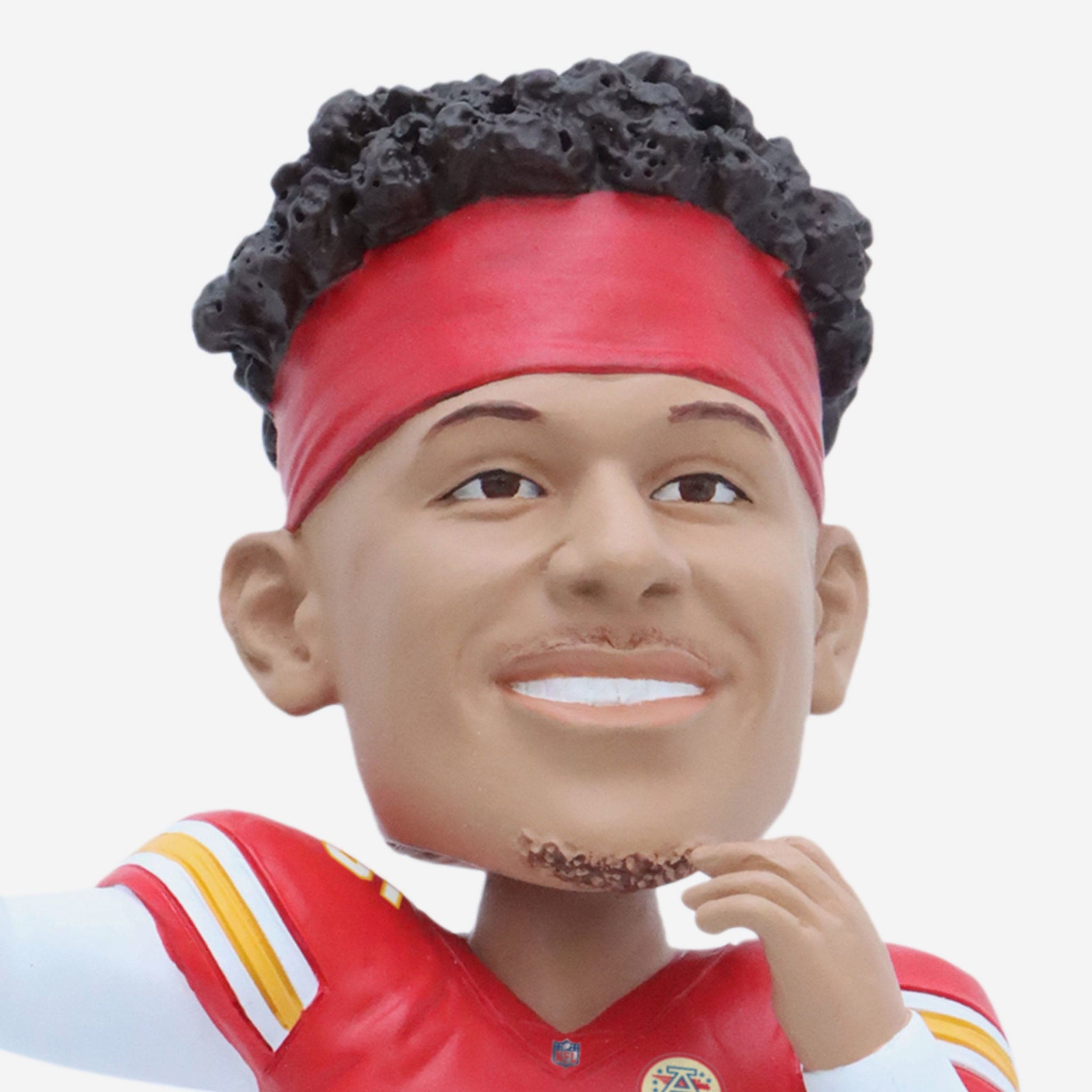- Portrays Mahomes wearing his red gameday uniform in an action pose, ready to make the play of the game