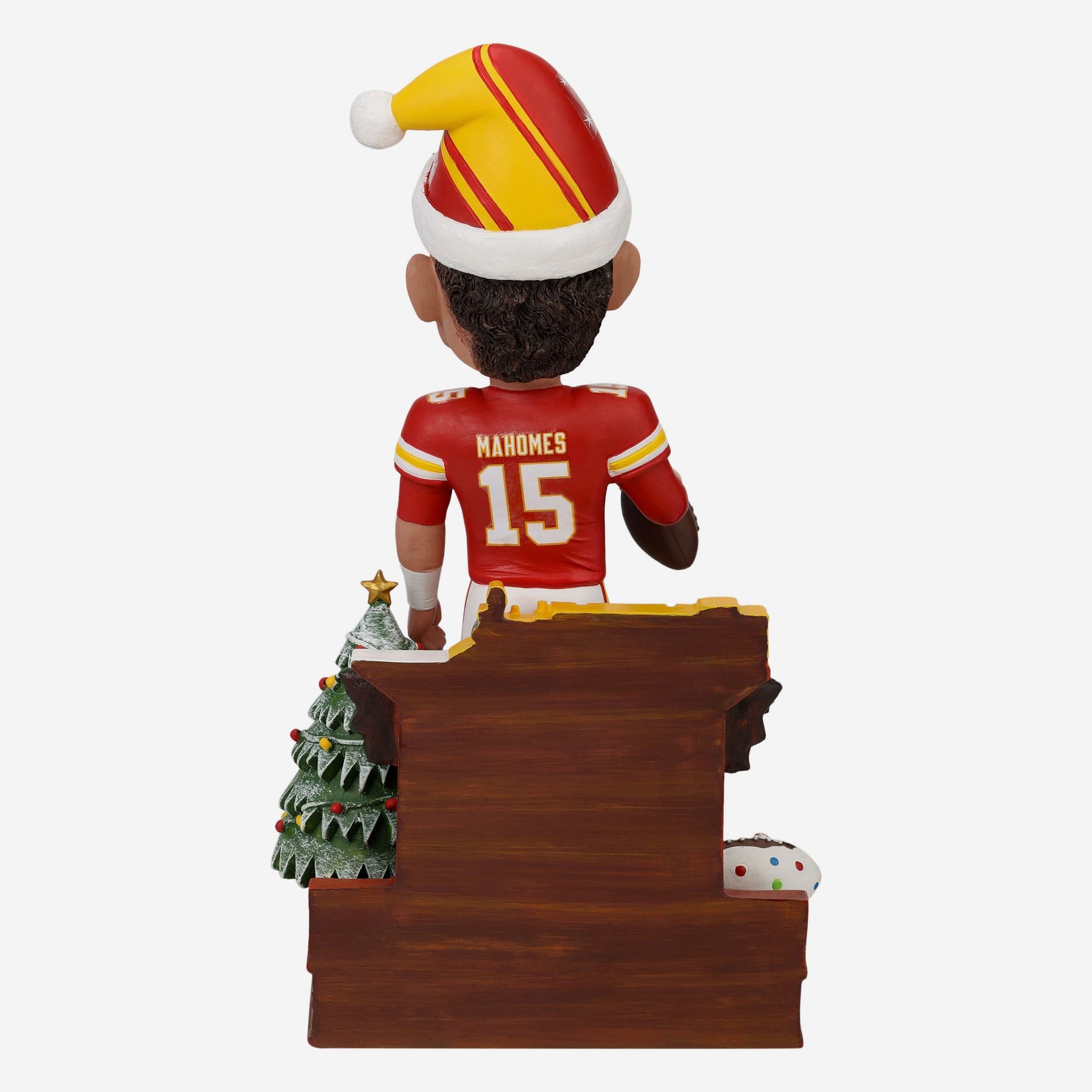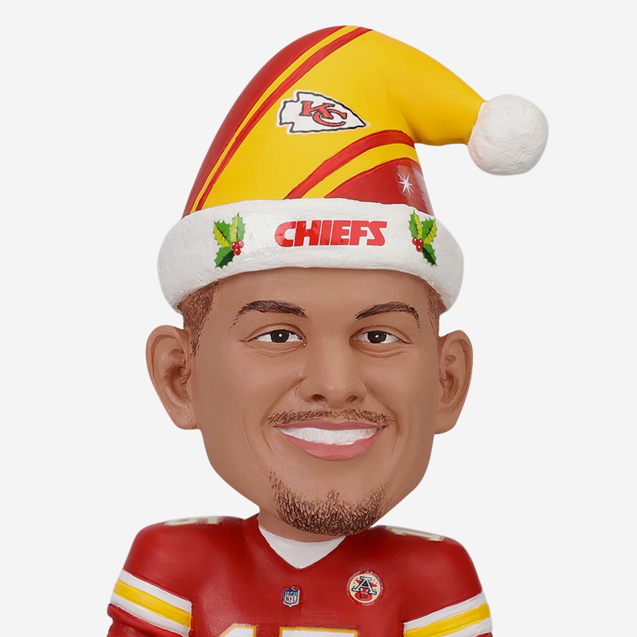 • Portrays Mahomes wearing his red gameday uniform and team colored Santa hat, ready to make the festive play of the game