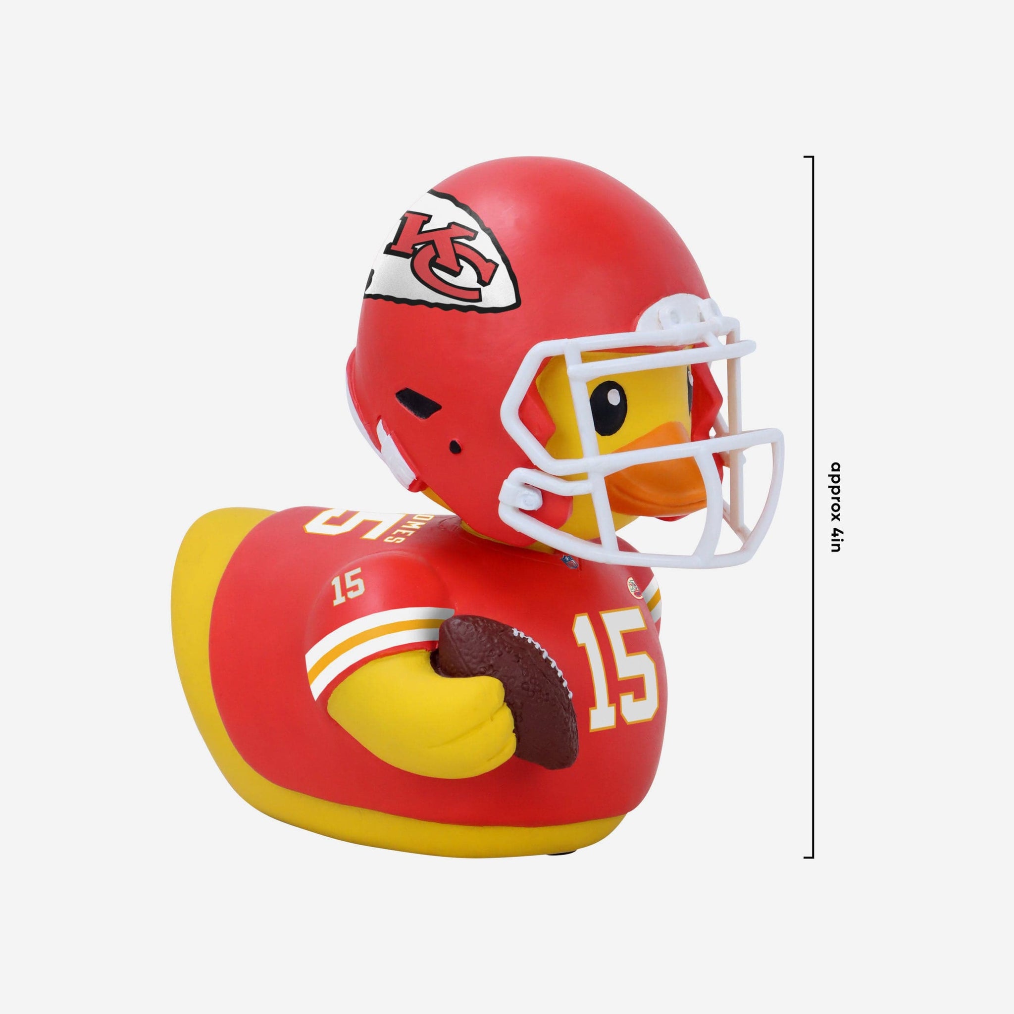 - Portrays duck wearing Patrick Mahomes' red gameday uniform and helmet, ready to make a splash in your collection