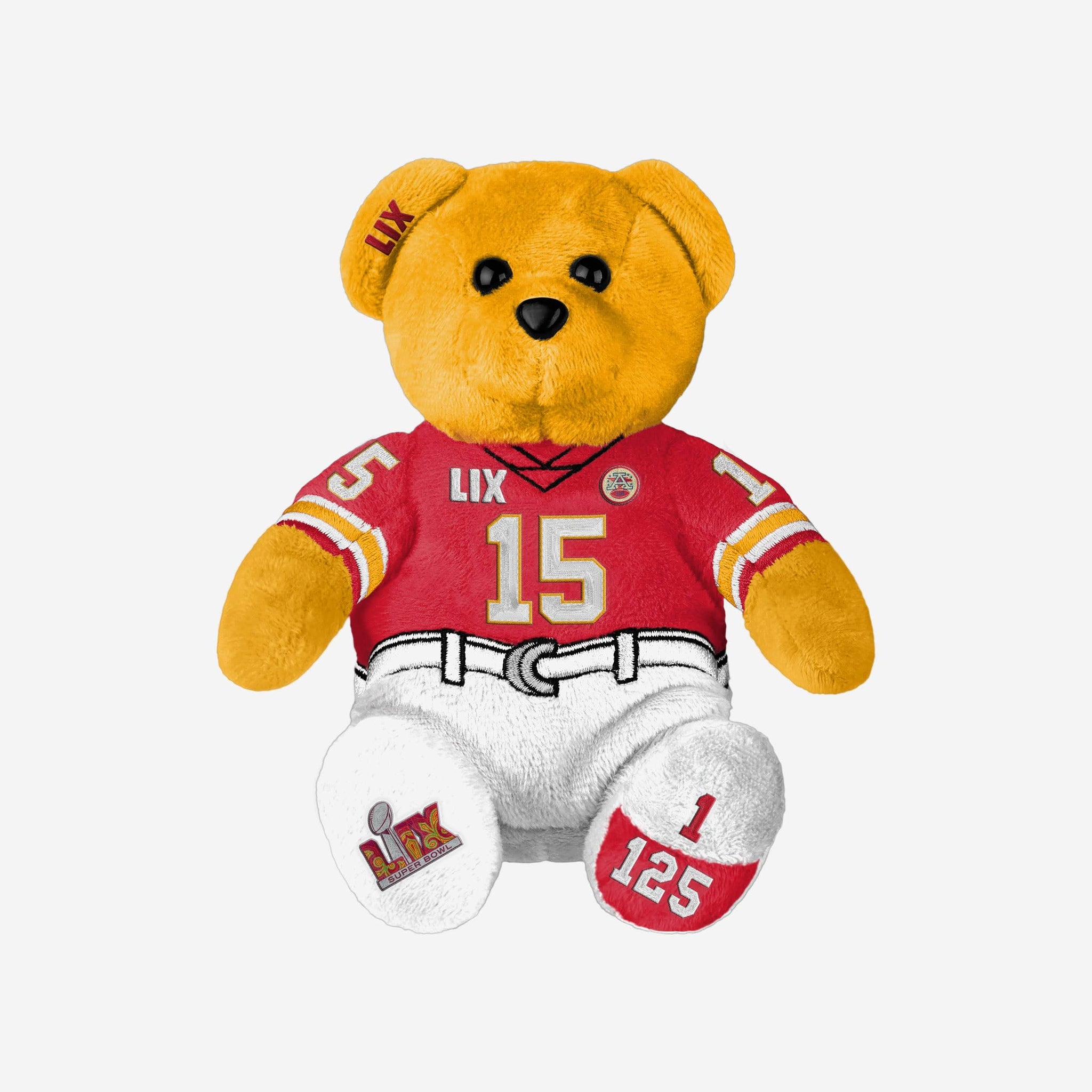 Mahomes is headed to the big game! Snuggle up to all the Super Bowl action with the Patrick Mahomes Kansas City Chiefs Super Bowl LIX Bound Team Beans Embroidered Player Bear.