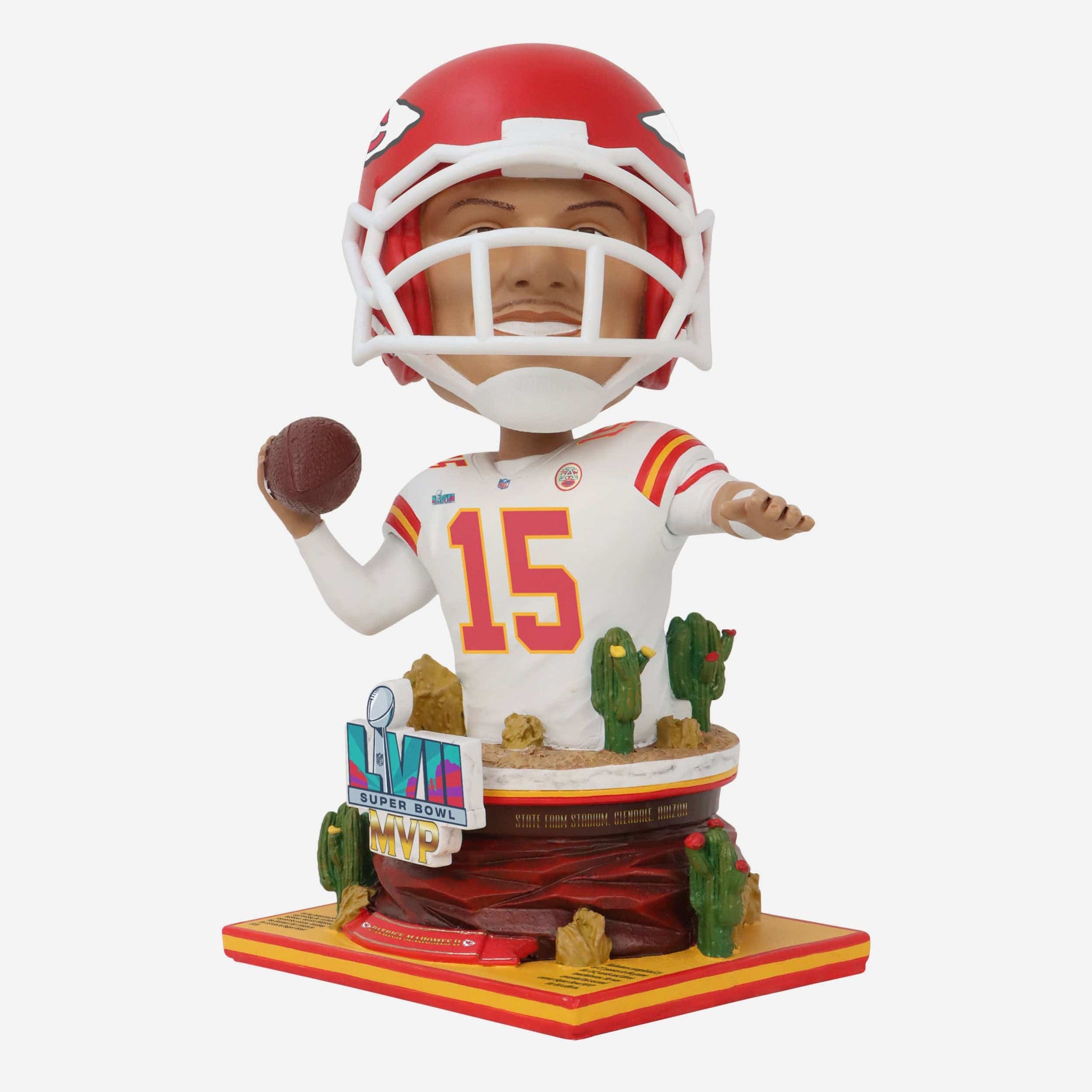 M-V-P! M-V-P! Turn back the clock and show off a "Super" player from the past with this Patrick Mahomes Kansas City Chiefs Super Bowl LVII MVP Bust Bighead Bobblehead.