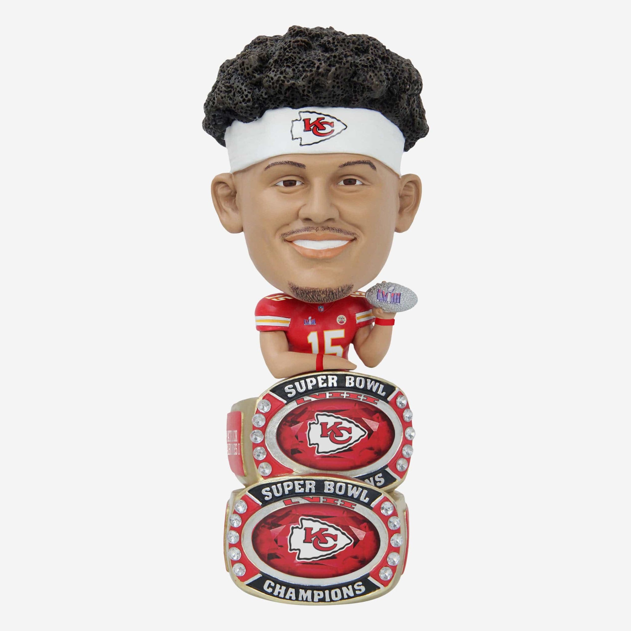 Add some championship bling to your bobble collection! We think you'll agree this Patrick Mahomes Super Bowl LVIII Champions Double Ring Base Bighead Bobblehead will be a VIP addition to your collection.