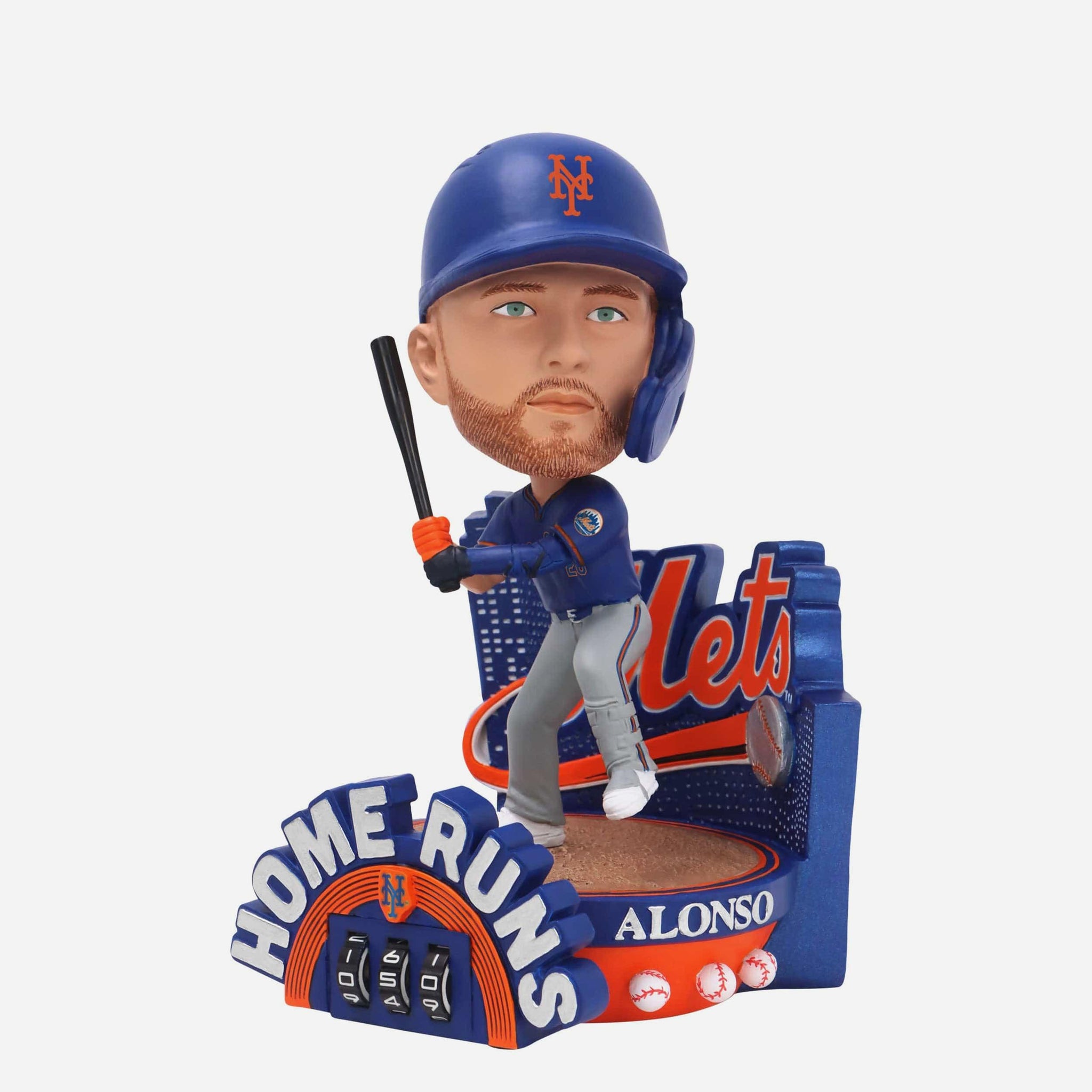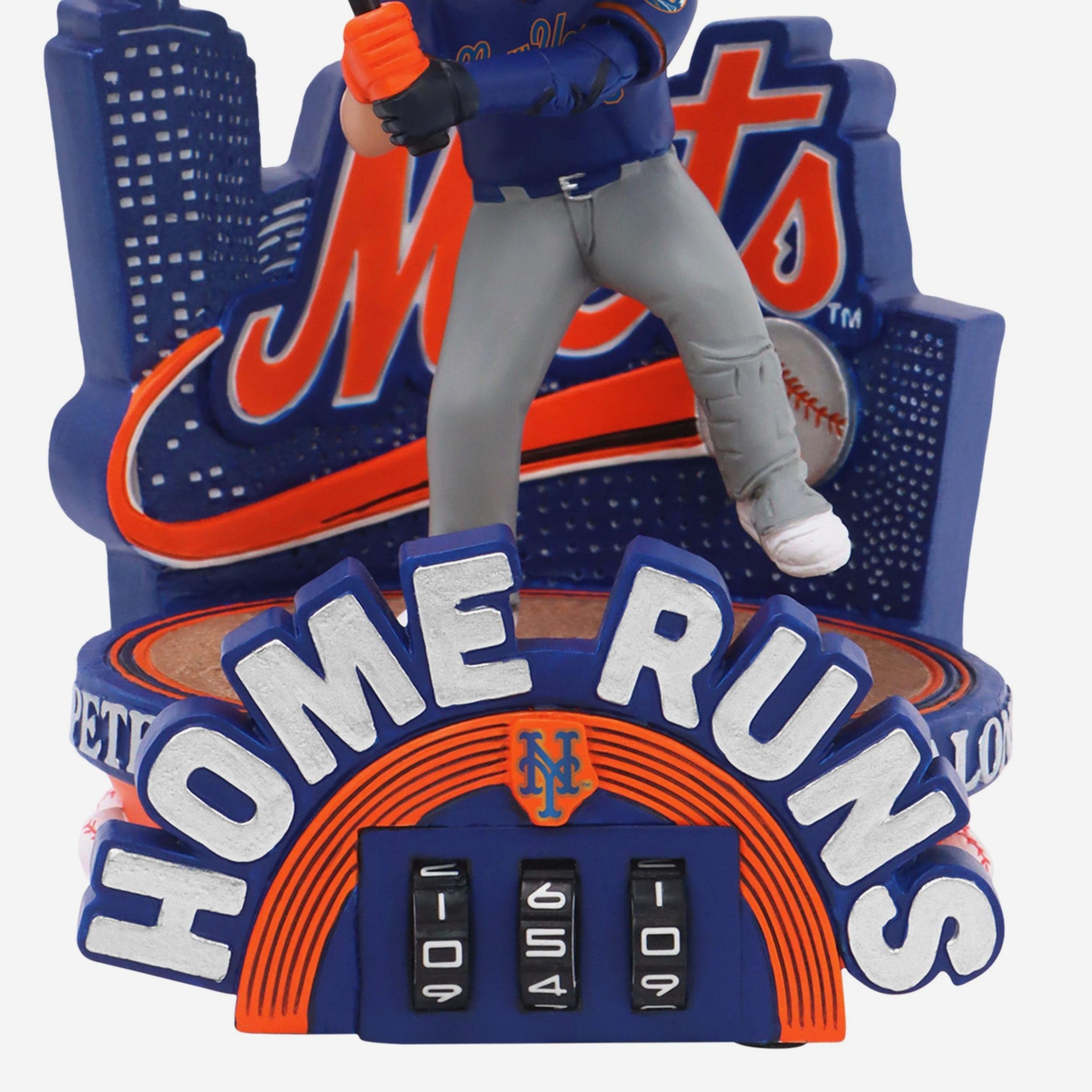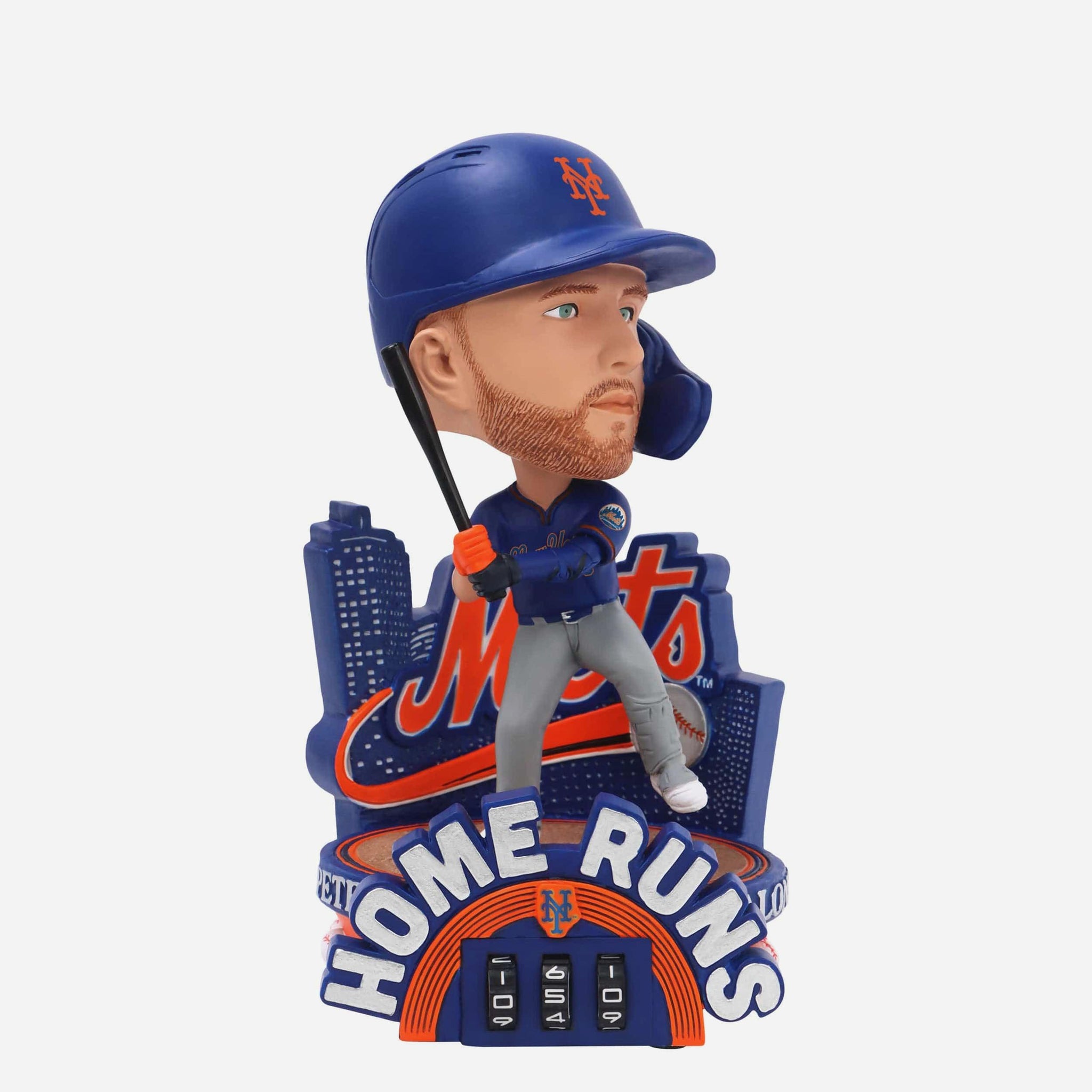 With every swing into the stands, Polar Pete adds to his tally! Count all his homers up with the Pete Alonso New York Mets Home Run Counter Medium Bighead Bobblehead.