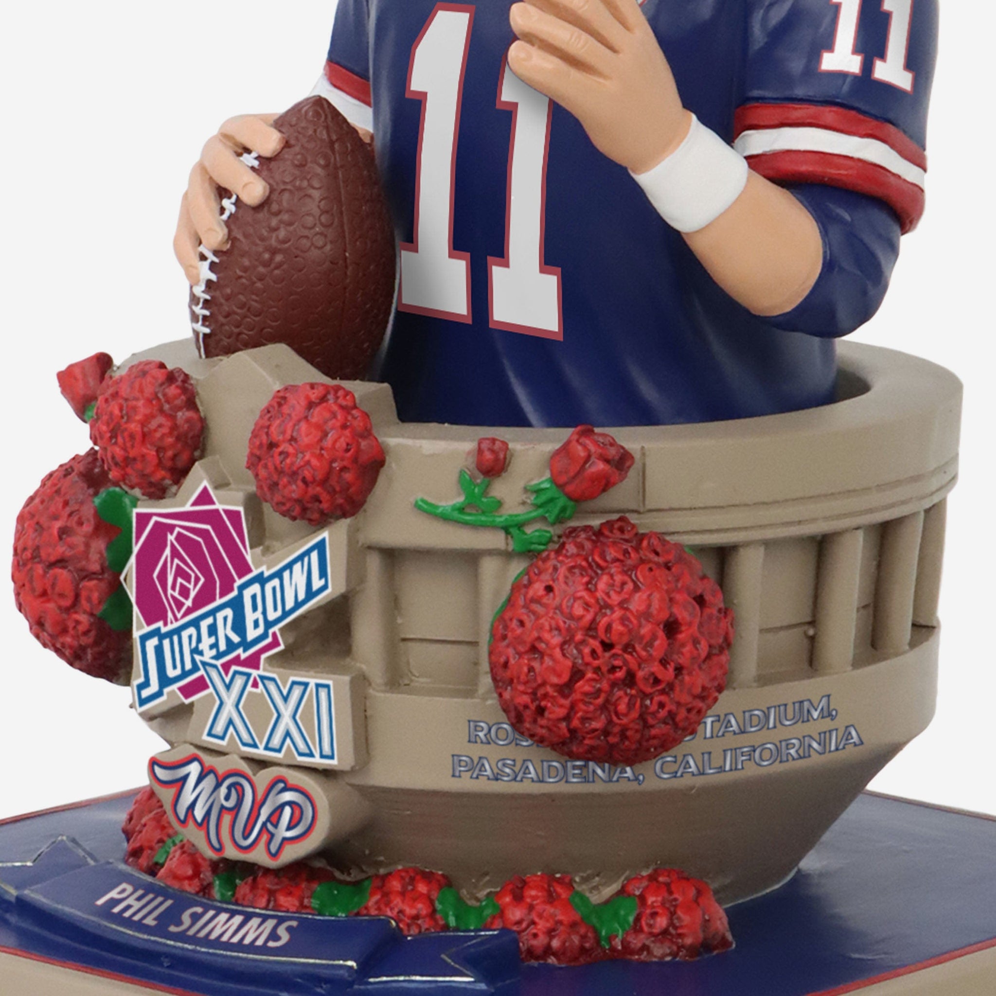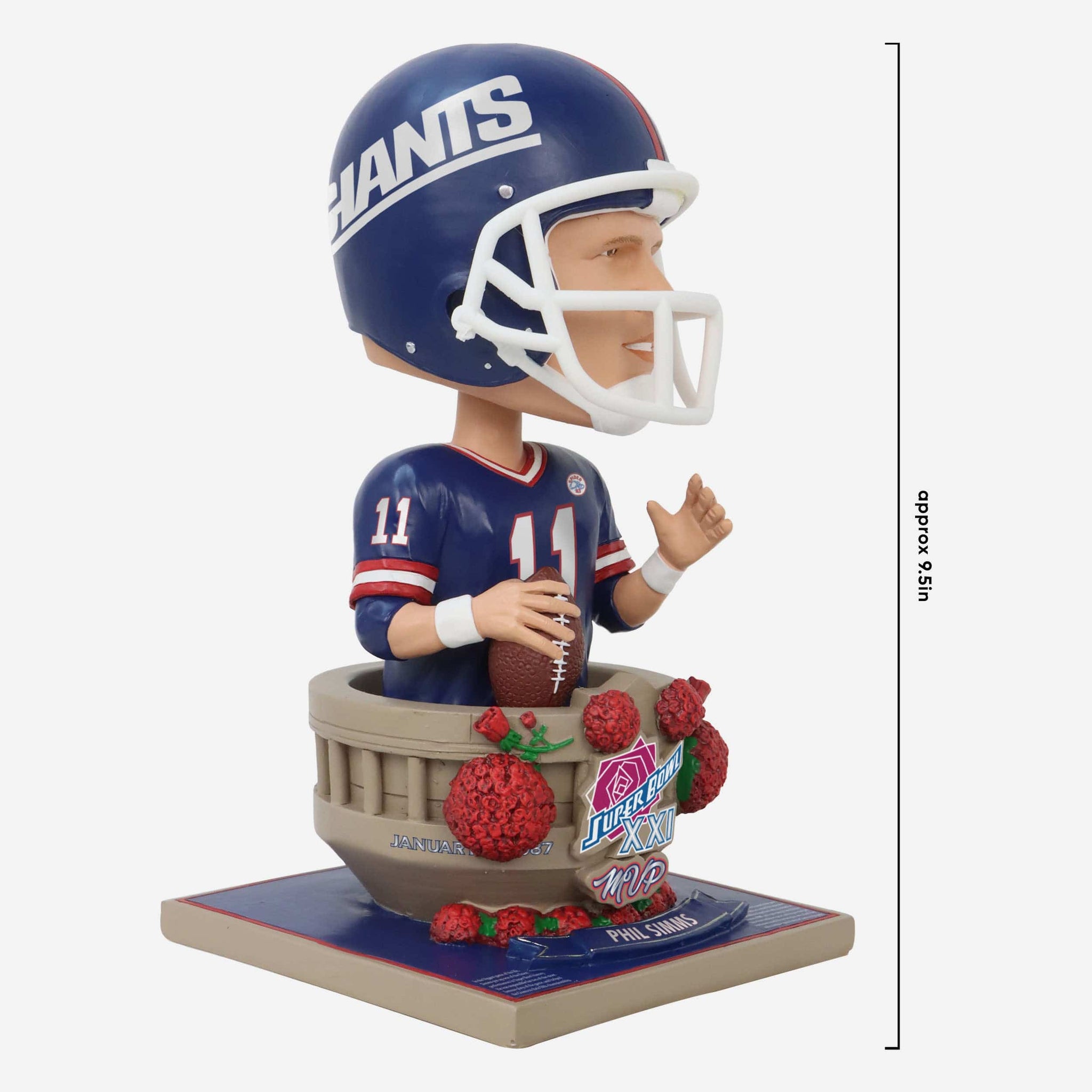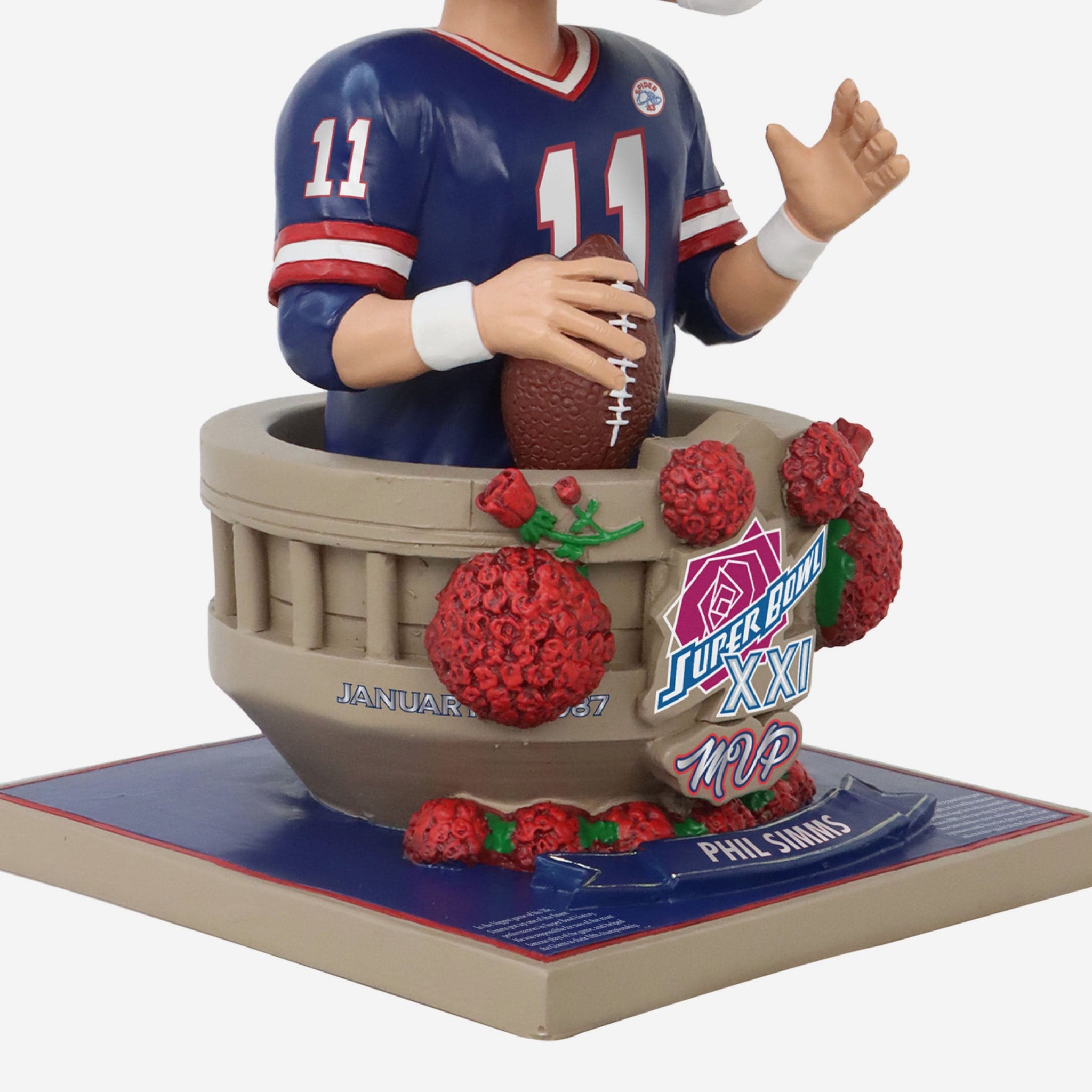 M-V-P! M-V-P! Turn back the clock and show off a "Super" player from the past with this Phil Simms New York Giants Super Bowl XXI MVP Bust Bighead Bobblehead.