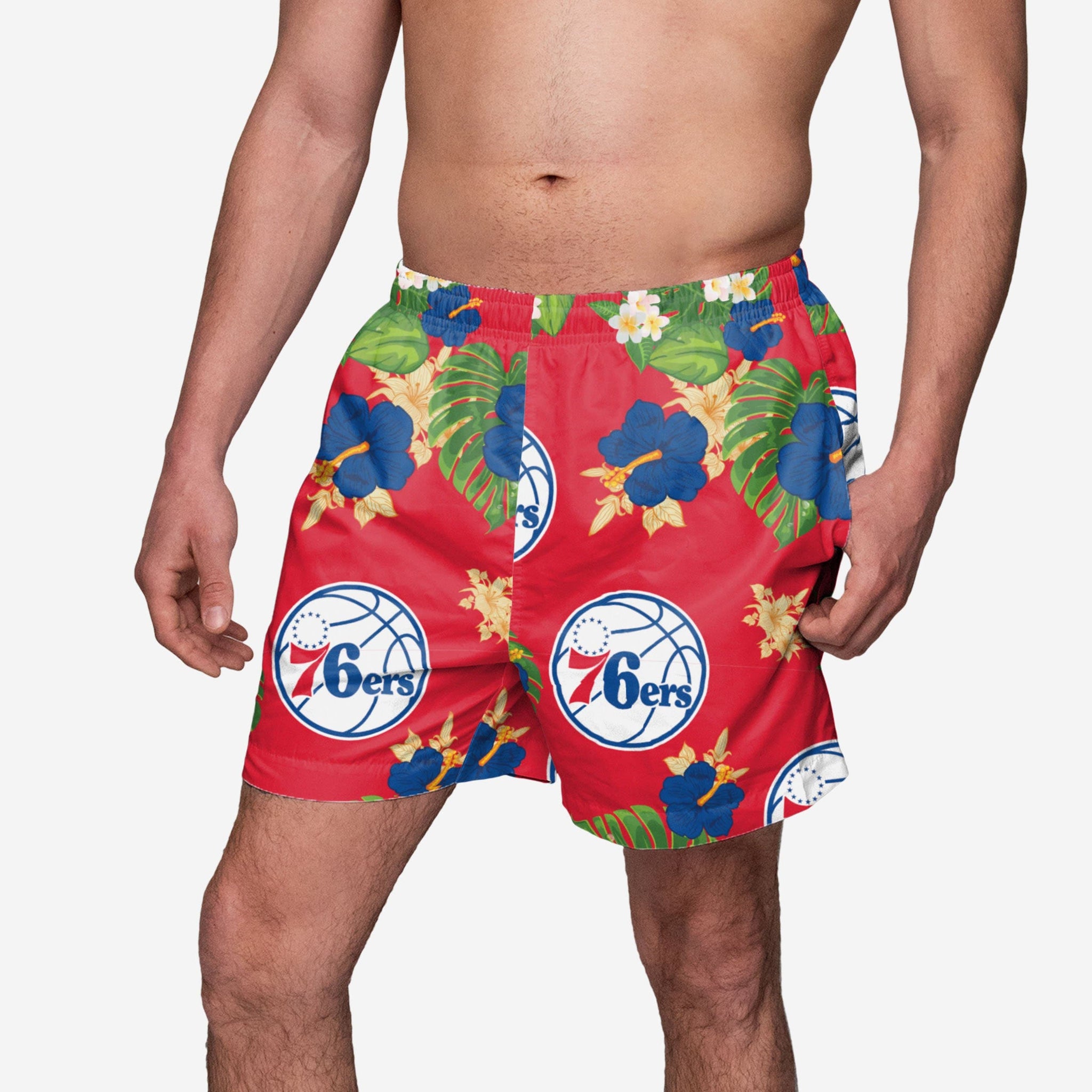 The only thing better than taking a dip in the pool on a hot day is doing so while showing off your one-of-a-kind team spirit. That's why we made these Philadelphia 76ers Floral Swimming Trunks.
