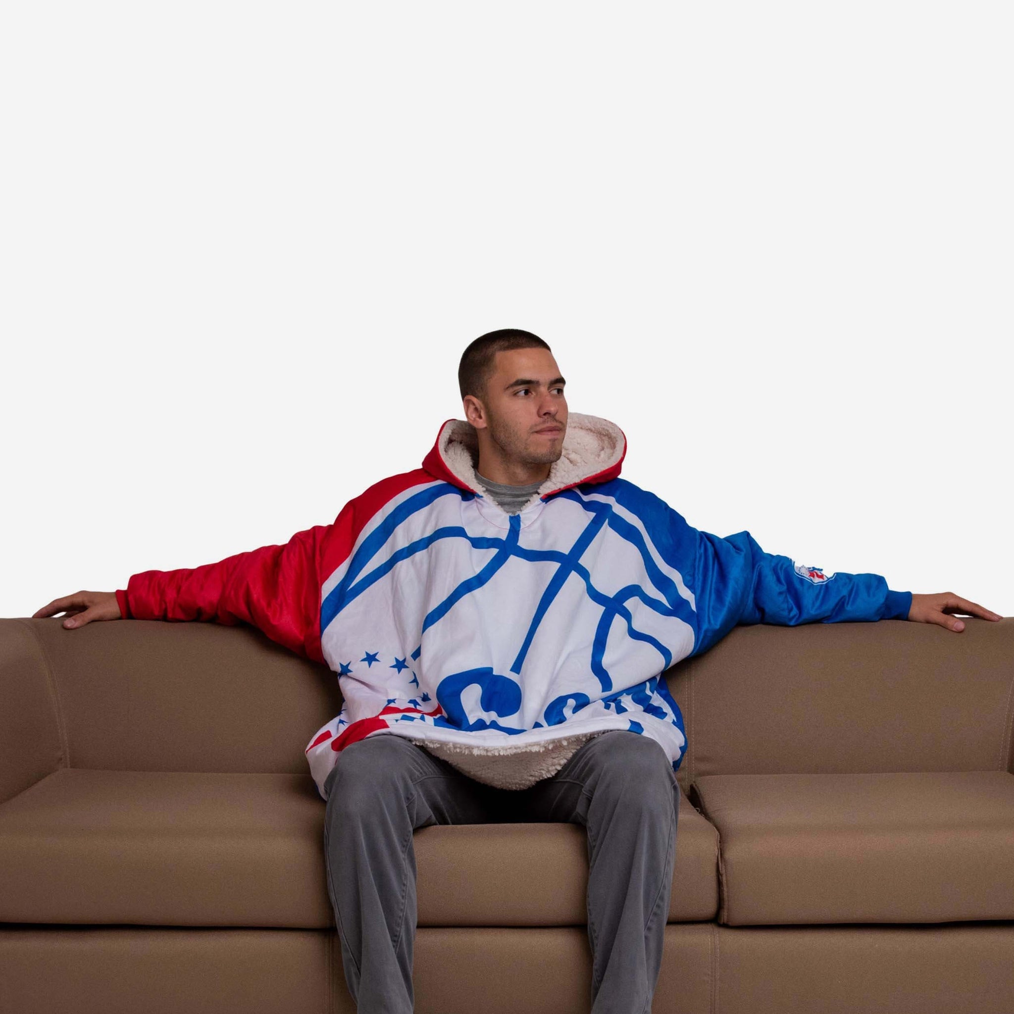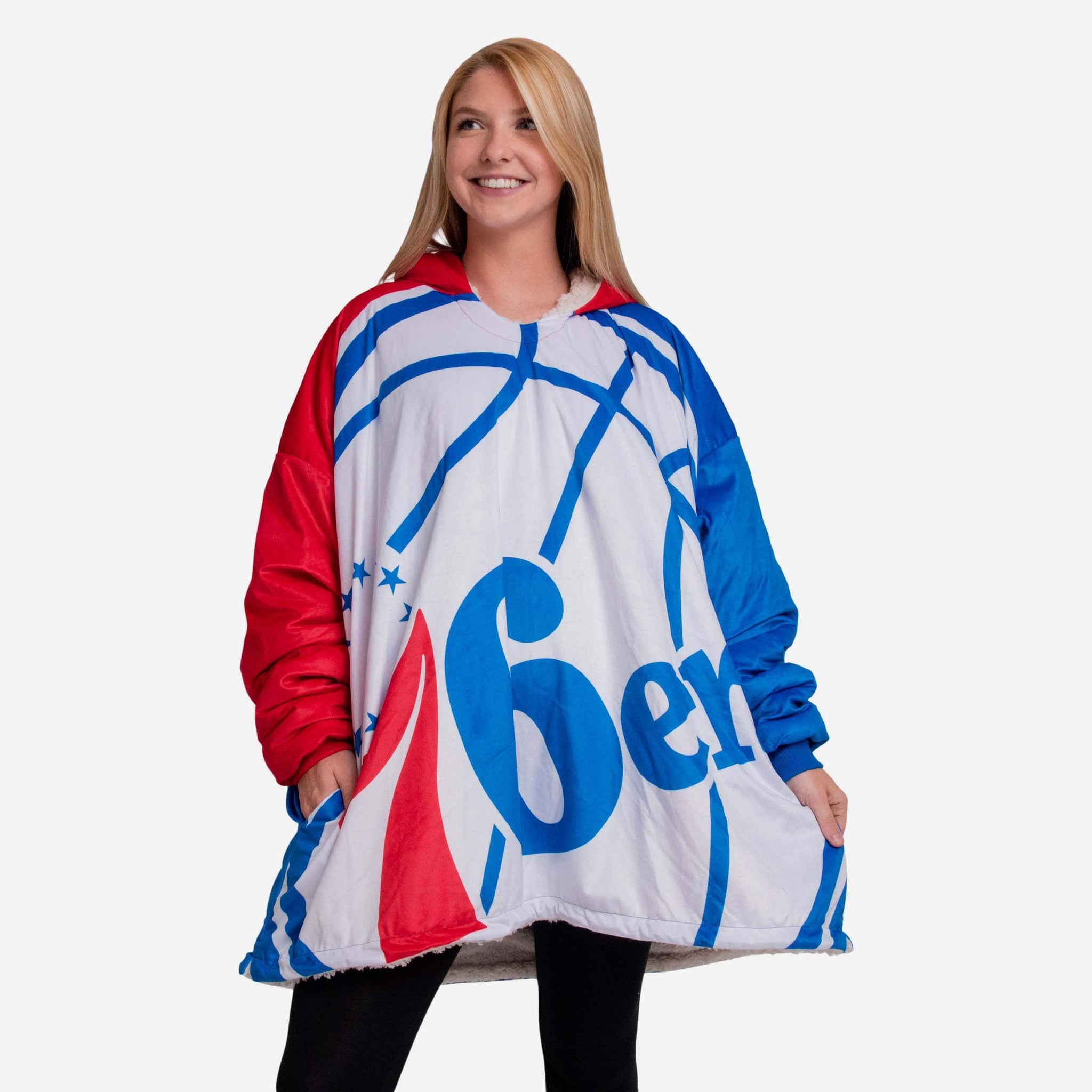 Never before has fandom looked so good and felt so relaxing. Lounge like a legend while you cheer your team on to victory by rocking this Philadelphia 76ers Reversible Colorblock Hoodeez.