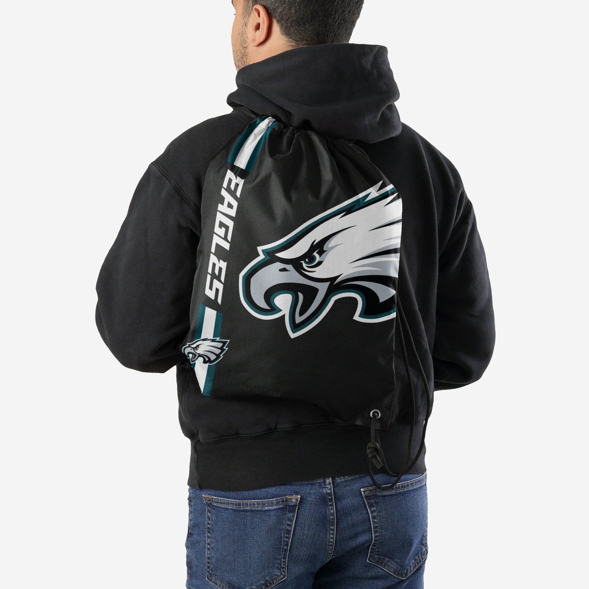 Whether you're going to work, class, or the gym, make sure you always put the team on your back. Literally. Store your stuff and show off your team spirit with this Philadelphia Eagles Black Alternate Color Big Logo Drawstring Backpack.