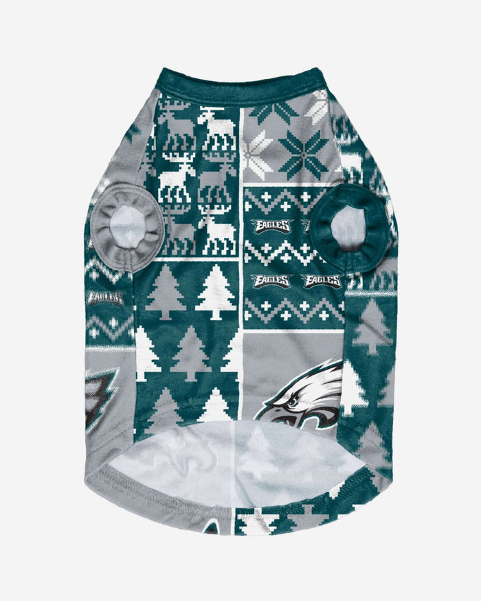 Show off your pet's holiday spirit with this dog sweater! Your good boy (or girl) will love this Philadelphia Eagles Busy Block Dog Sweater so much, they'll be saying "woof bark awooo" (that's "thank you" in pup language). Don't forget to match your canine's sweater with a set of matching holiday pajamas!