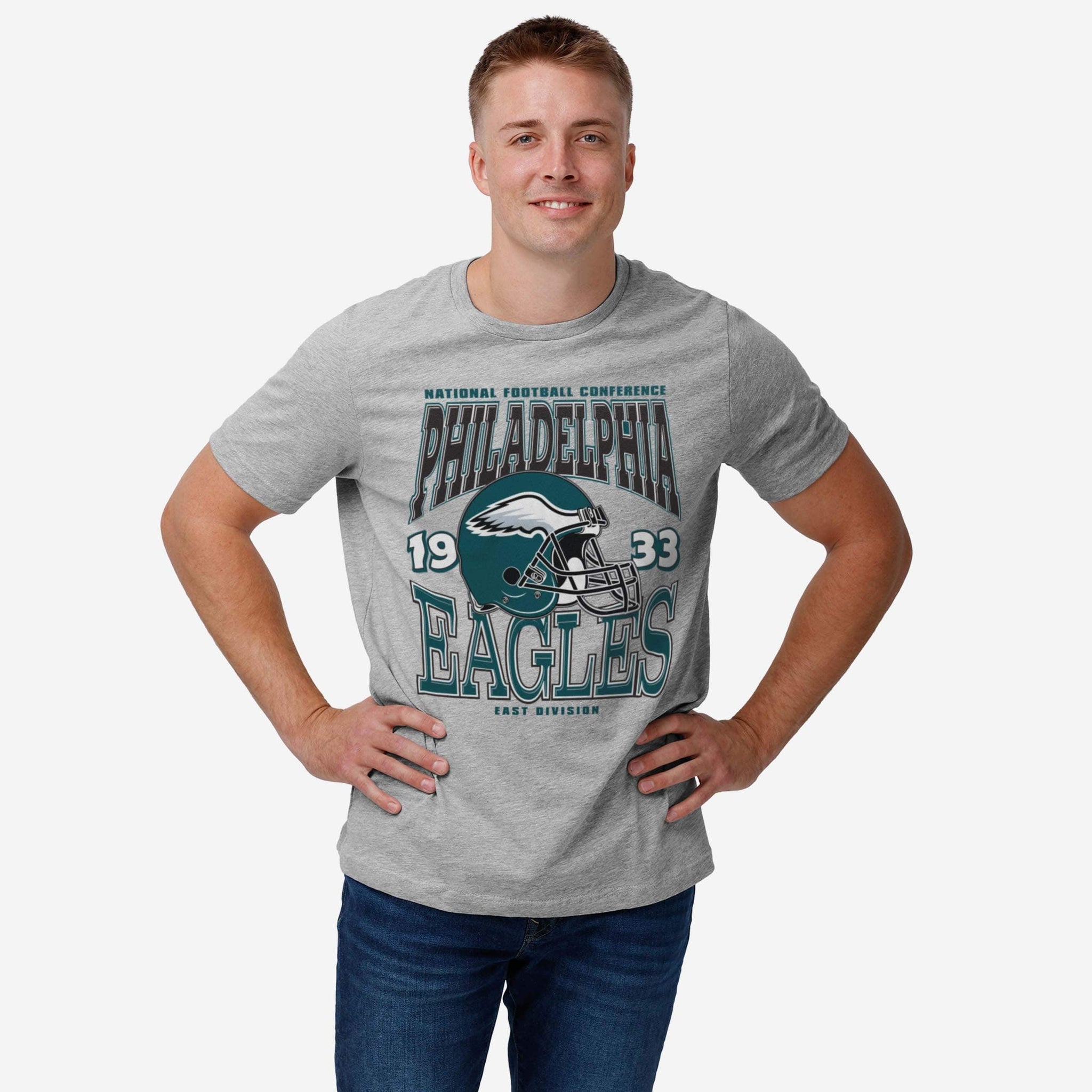 Style worthy of gridiron glory! Whether you’re at the tailgate, in the stands, or watching from the couch, the Philadelphia Eagles Classic Team Helmet T-Shirt will get your head in the game.
