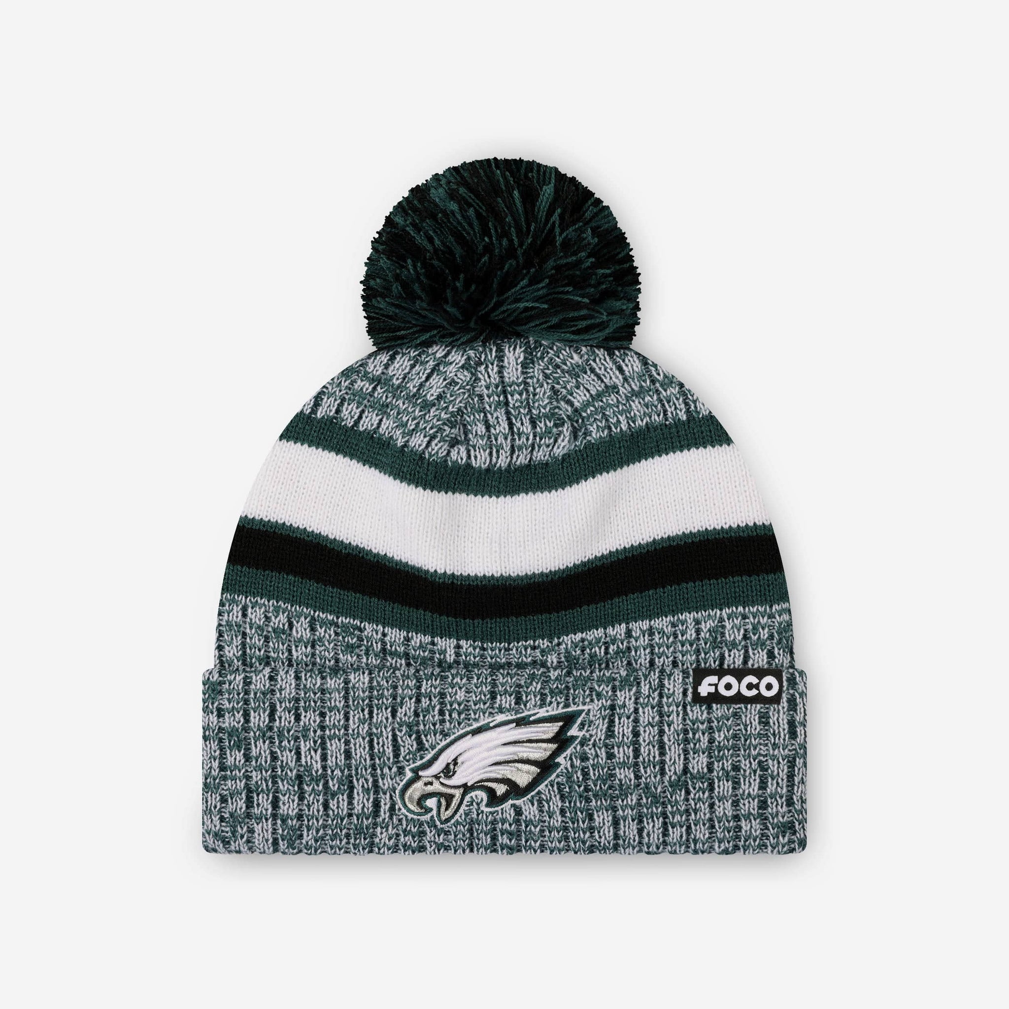 Don’t get left out in the cold. Make the smart play for gameday and beyond with the Philadelphia Eagles Heather Team Stripe Lined Pom Beanie!