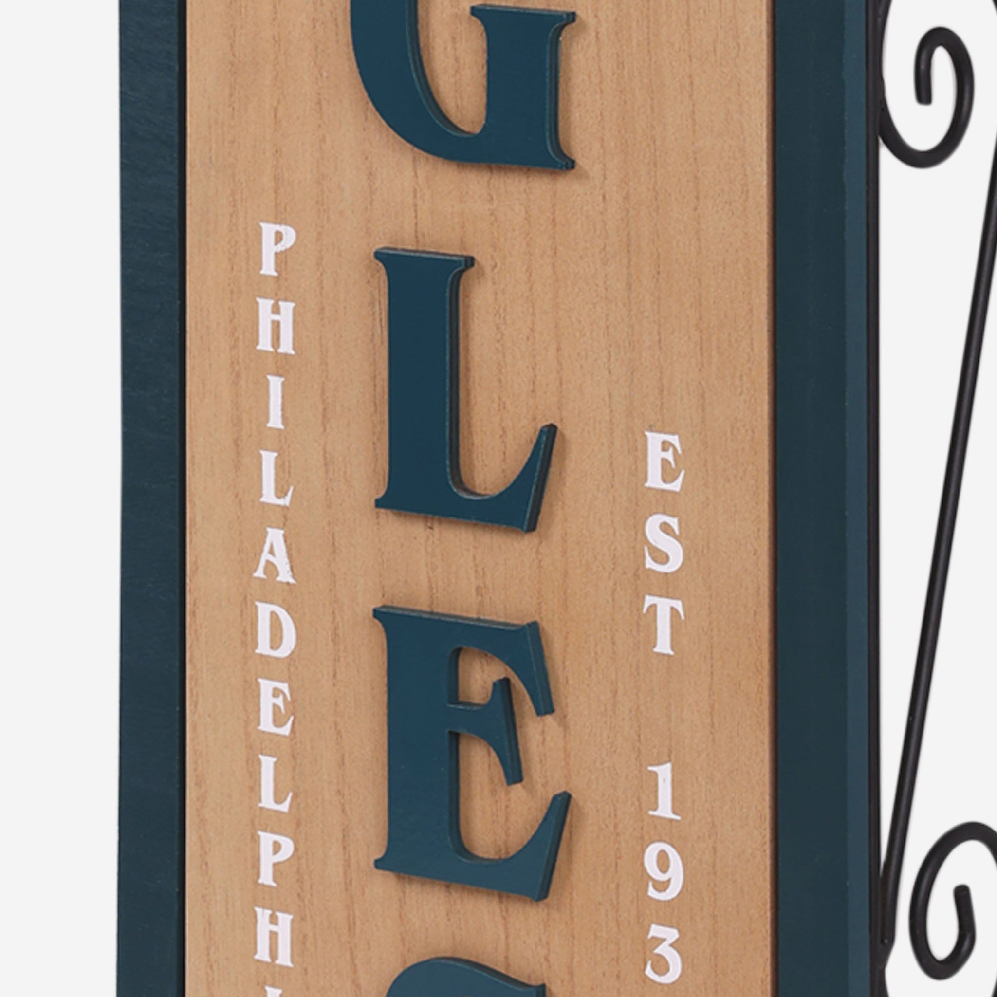 - Wooden sled door hanger with wreath and team logo accents, in case there were any doubts where your allegiances lie