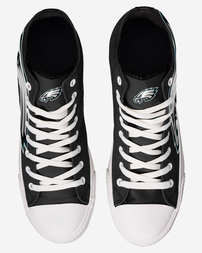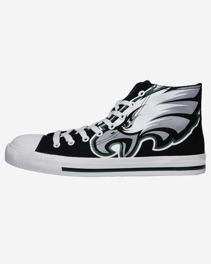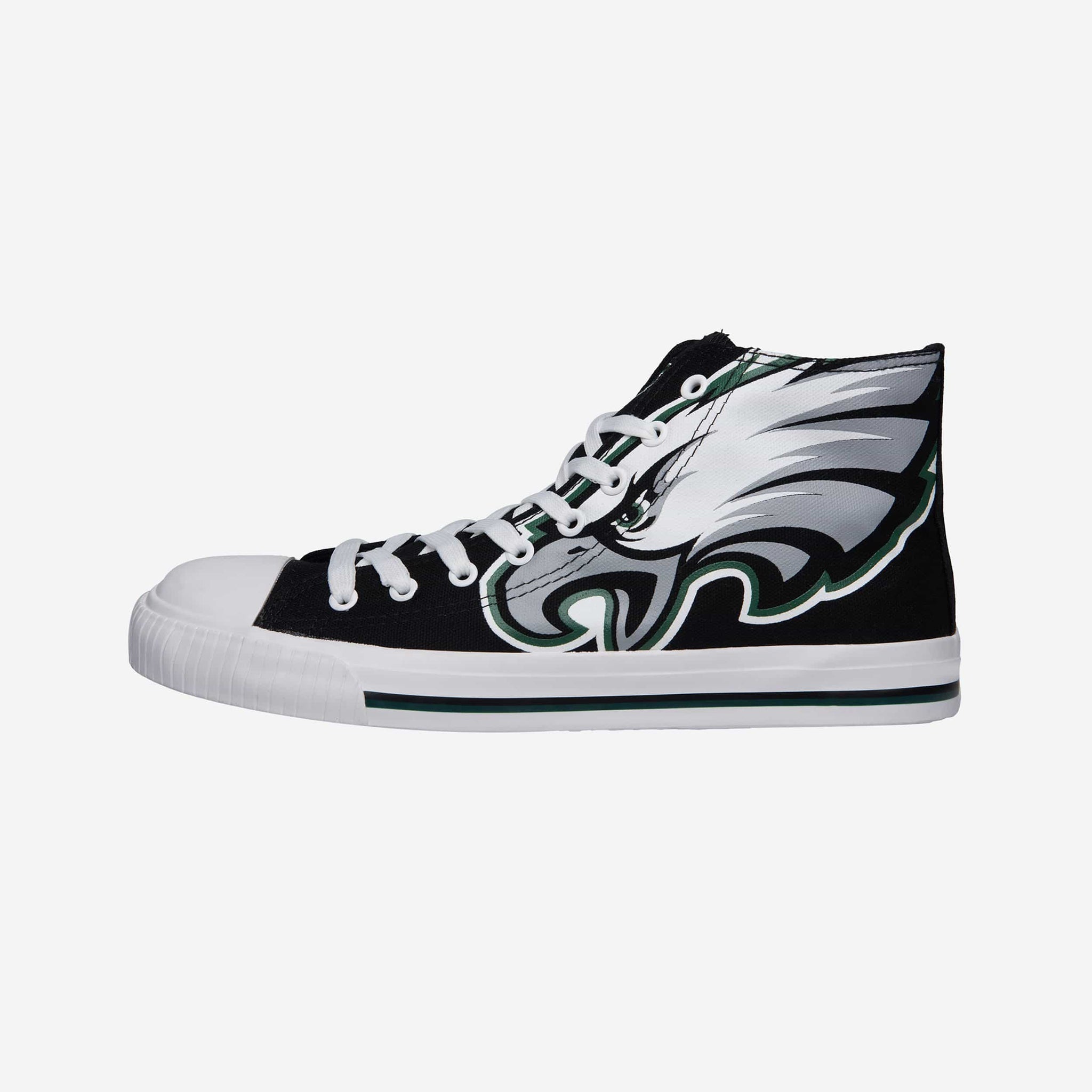 Right now, it's a day ending in "y", which means it's a beautiful day to be a fan. Get ready and get on your feet - a task made much easier when your feet are in these Philadelphia Eagles Mens High Top Big Logo Canvas Shoes. No one will be questioning where your allegiances lie.