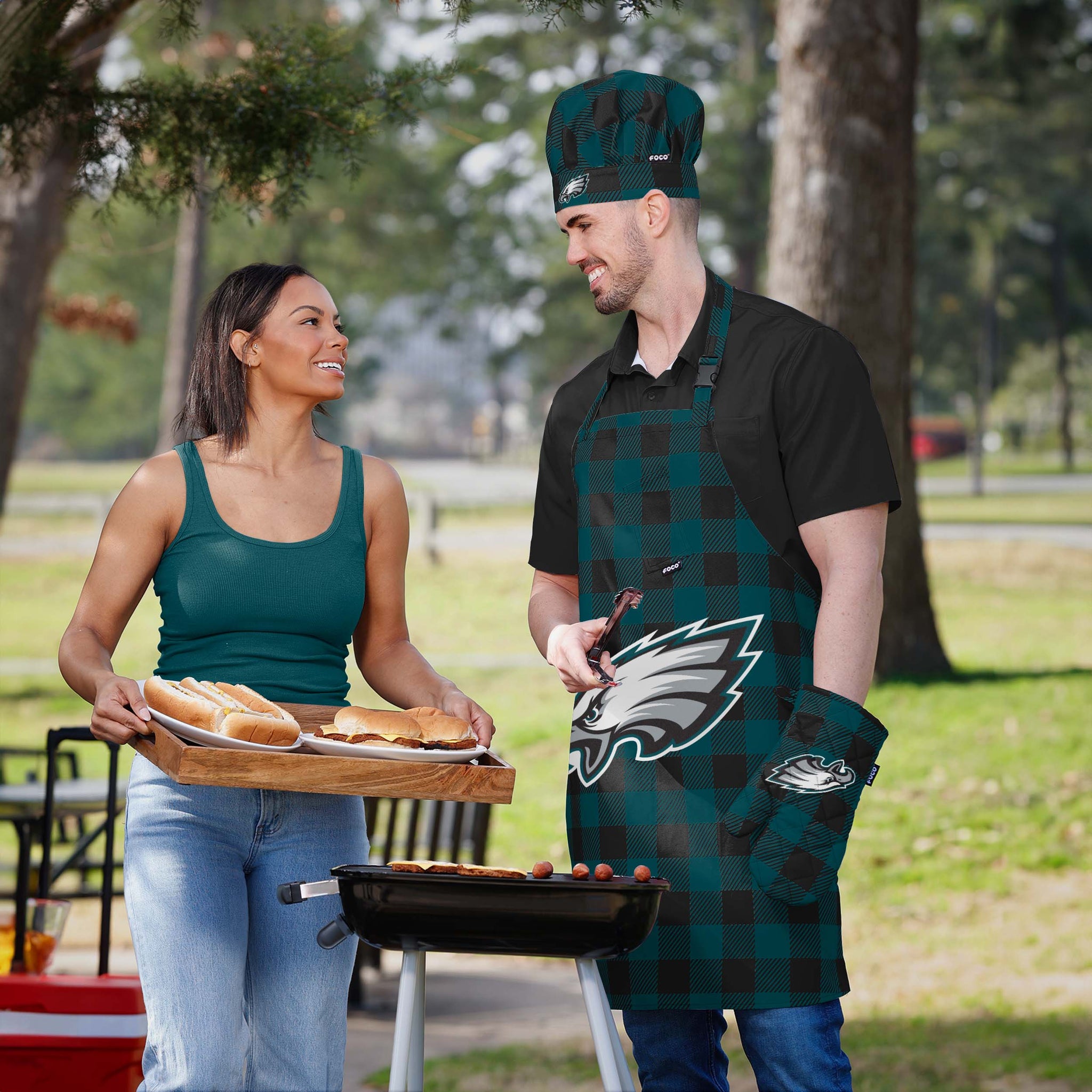 Get ready to serve up the best food in the greatest fan fit. From the kitchen, to the table, to game day, do it all in style with the Philadelphia Eagles Plaid Chef Set.