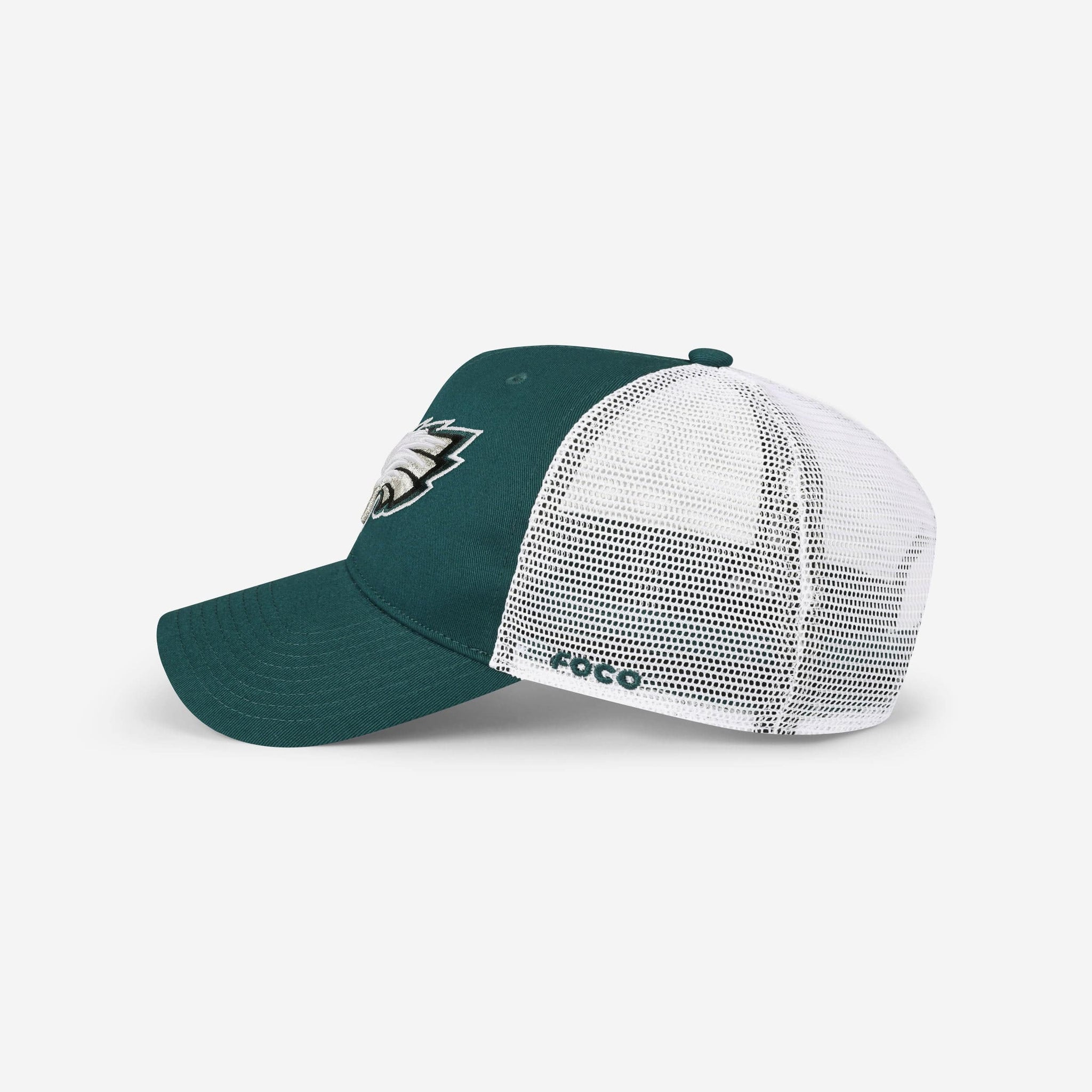 Whether you're behind the wheel of a big rig or in the stands at the game, this Philadelphia Eagles Primary Logo Trucker RF Cap is just the thing for your outfit. Featuring an embroidered team logo display and unstructured design with a flat visor and high crown, you’ll be all set to play the role of trucker and fan. Plus, the mesh panels and adjustable snapback snap closure makes this hat perfect for any adventure.