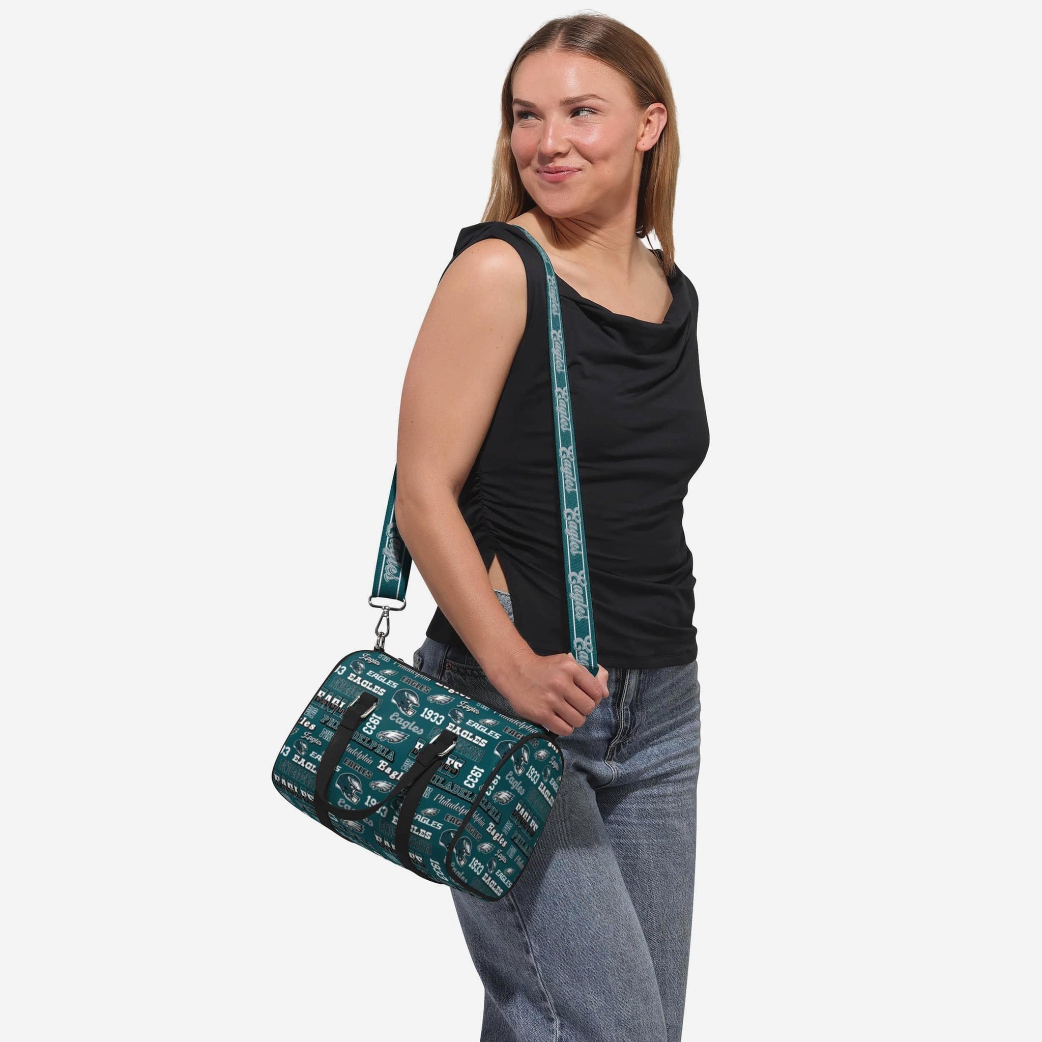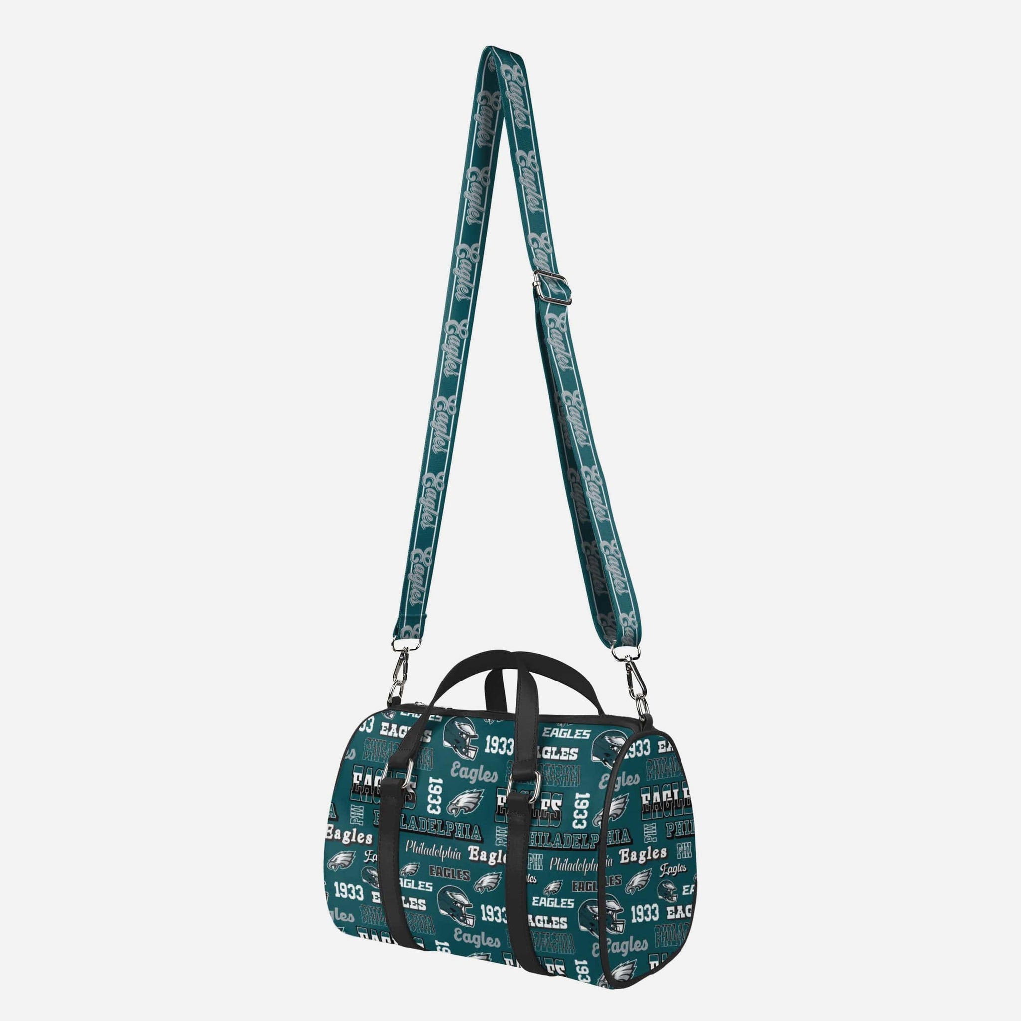 Pack up and play on! Fashion meets fandom in the Philadelphia Eagles Repeat Retro Print Nylon Medium Barrel Bag.
