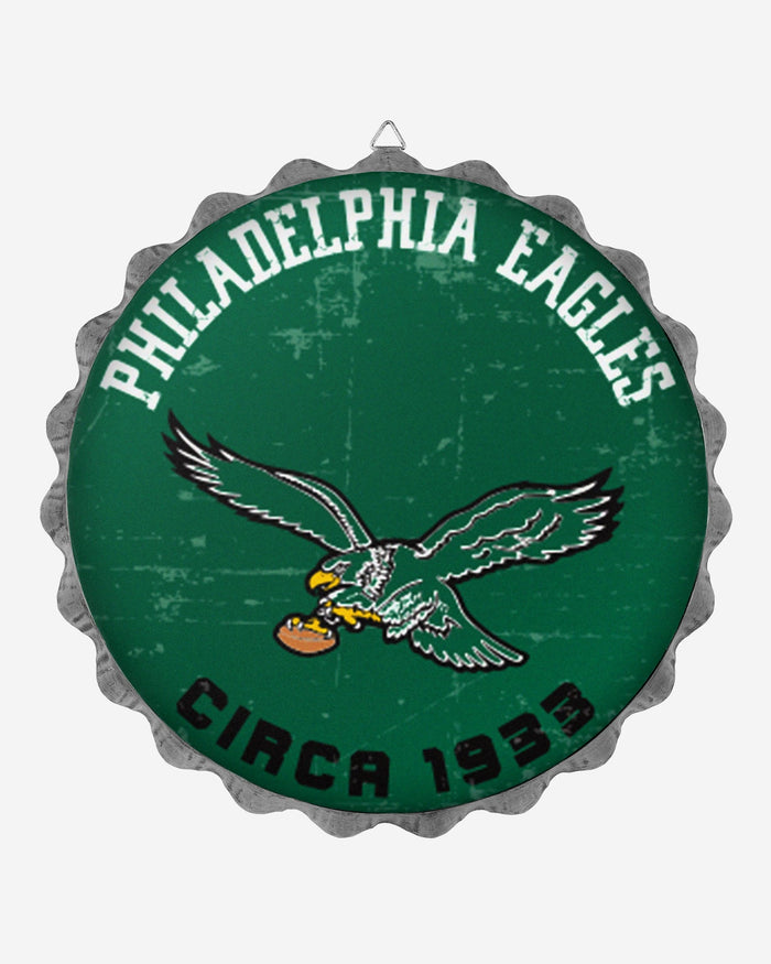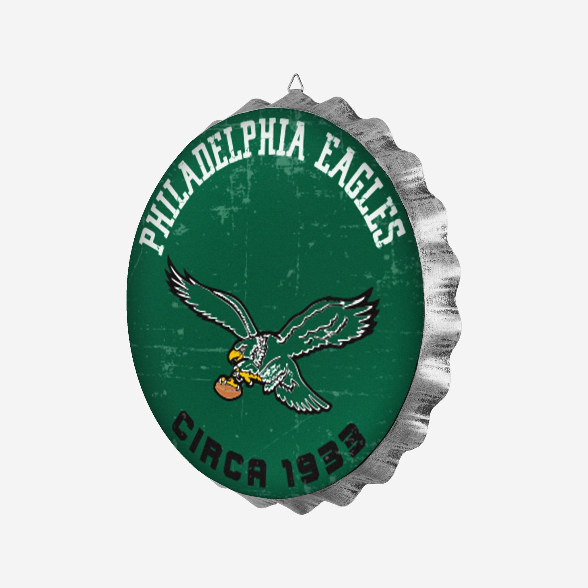 It's time to cap-tivate your fellow fans get ready to go old school. This Philadelphia Eagles Retro Bottle Cap Wall Sign is just what you need to cap off your fancave decorations.