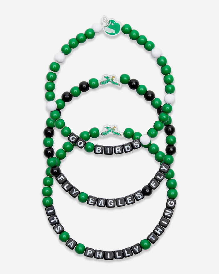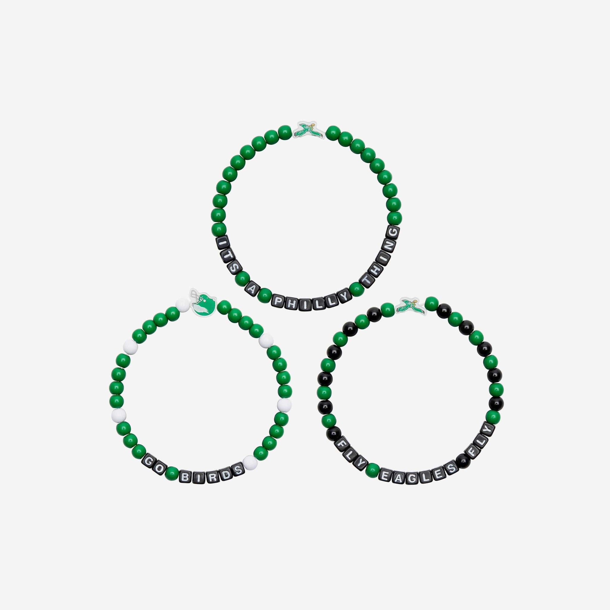 A whole new way to rep the team in style is here. Step up your fan fashion sense with this Philadelphia Eagles Retro Kelly Green 3 Pack Beaded Friendship Bracelet. These matching friendship bracelets have an all-over team-colored design and team logo displays, which makes them the perfect way to show your support for the Philadelphia Eagles on gamedays and every day in between.