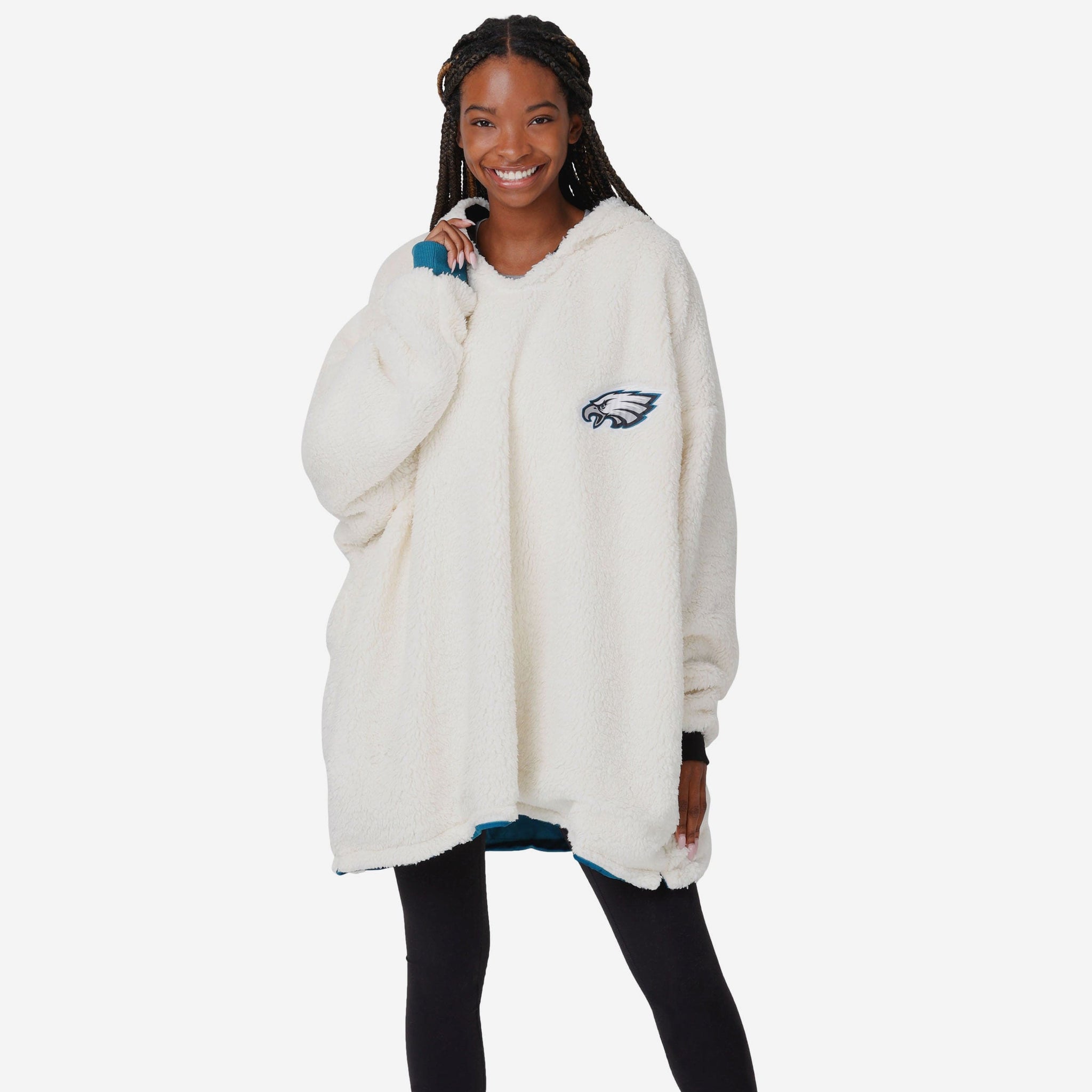 Never before has fandom looked so good and felt so relaxing. Lounge like a legend while you cheer your team on to victory by rocking this Philadelphia Eagles Reversible Colorblock Hoodeez.