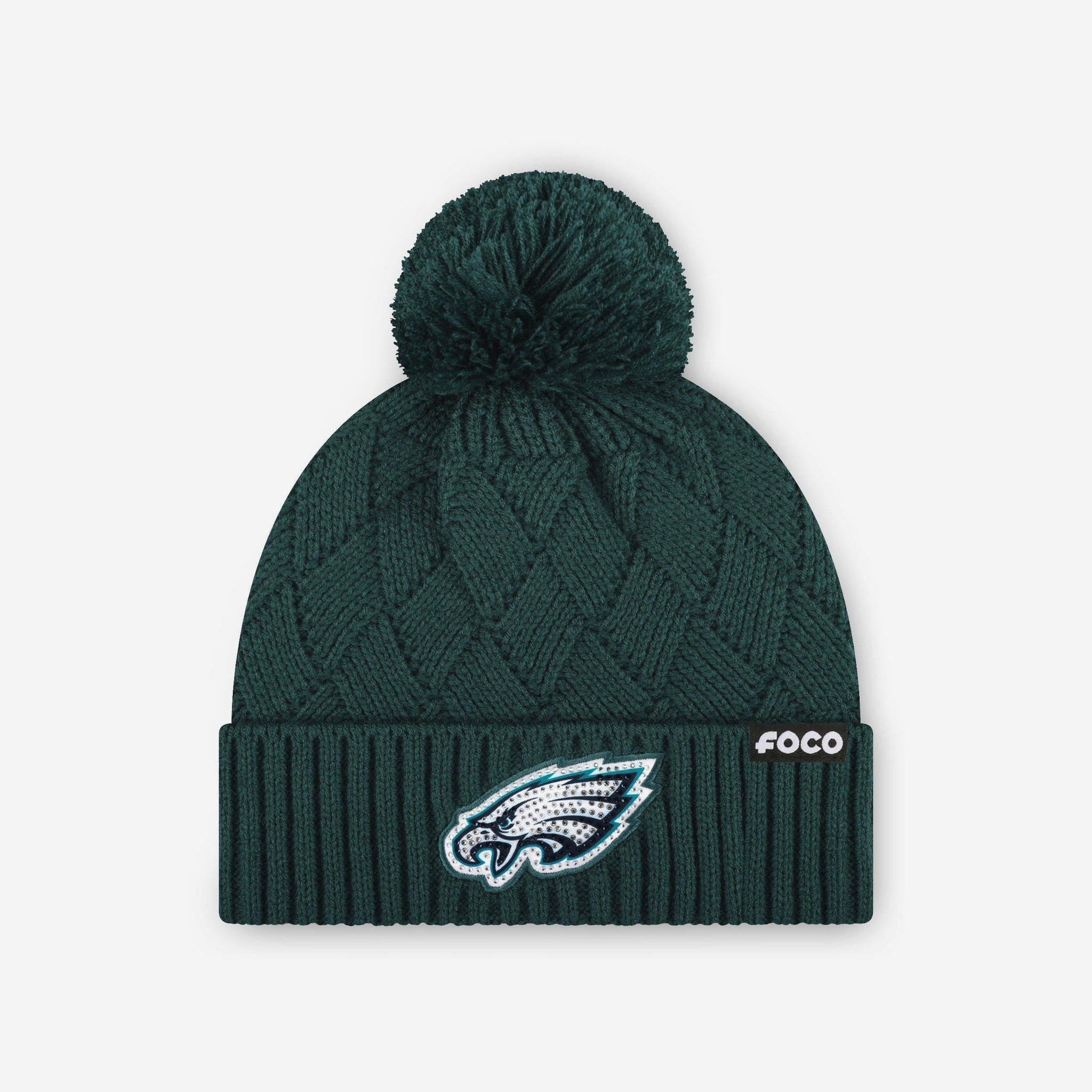 Stay warm, look fabulous, and show your team spirit all season long! The Philadelphia Eagles Rhinestone Primary Logo Criss Cross Beanie is your cozy, cute, and sparkly winter MVP.
