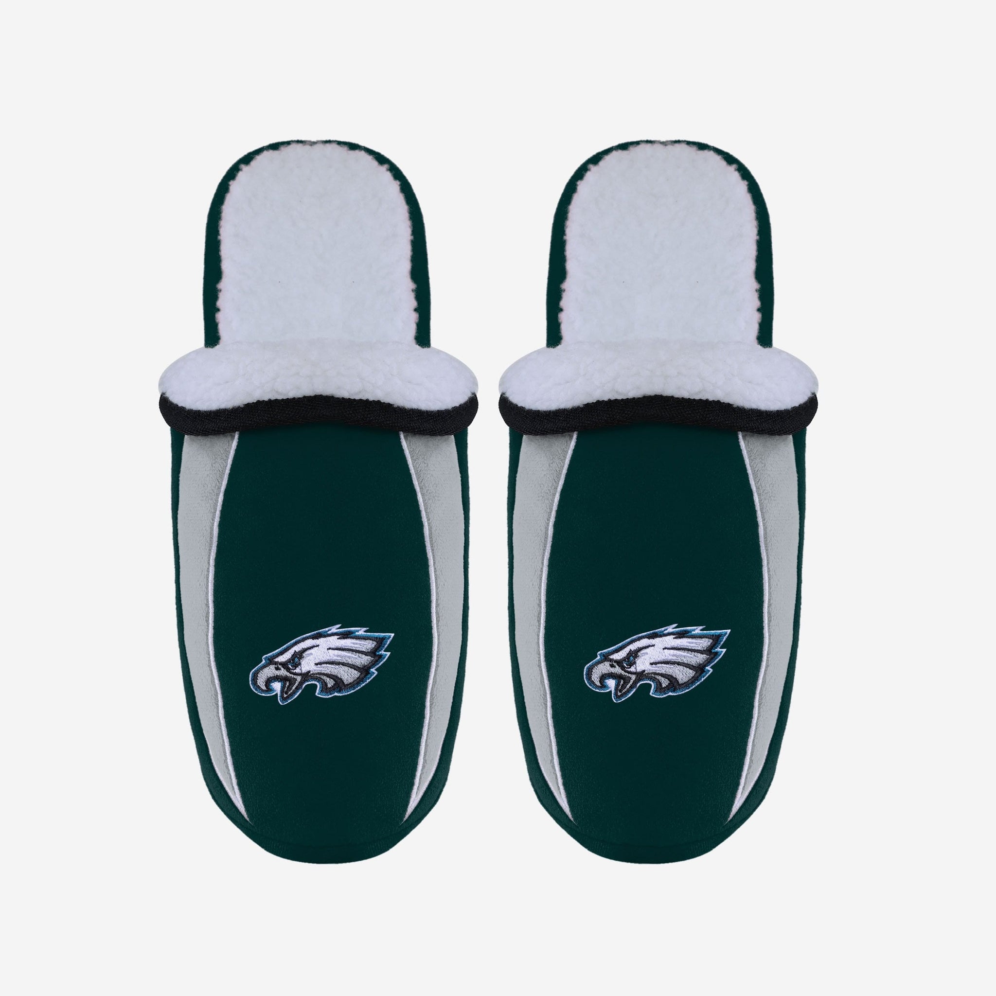 Kicking back, putting your feet up and watching the big game on the big screen in the fancave is great. You know what's even greater? Doing all that while wearing these Philadelphia Eagles Men's Sherpa Slide Slippers. Step into some serious fan comfort.