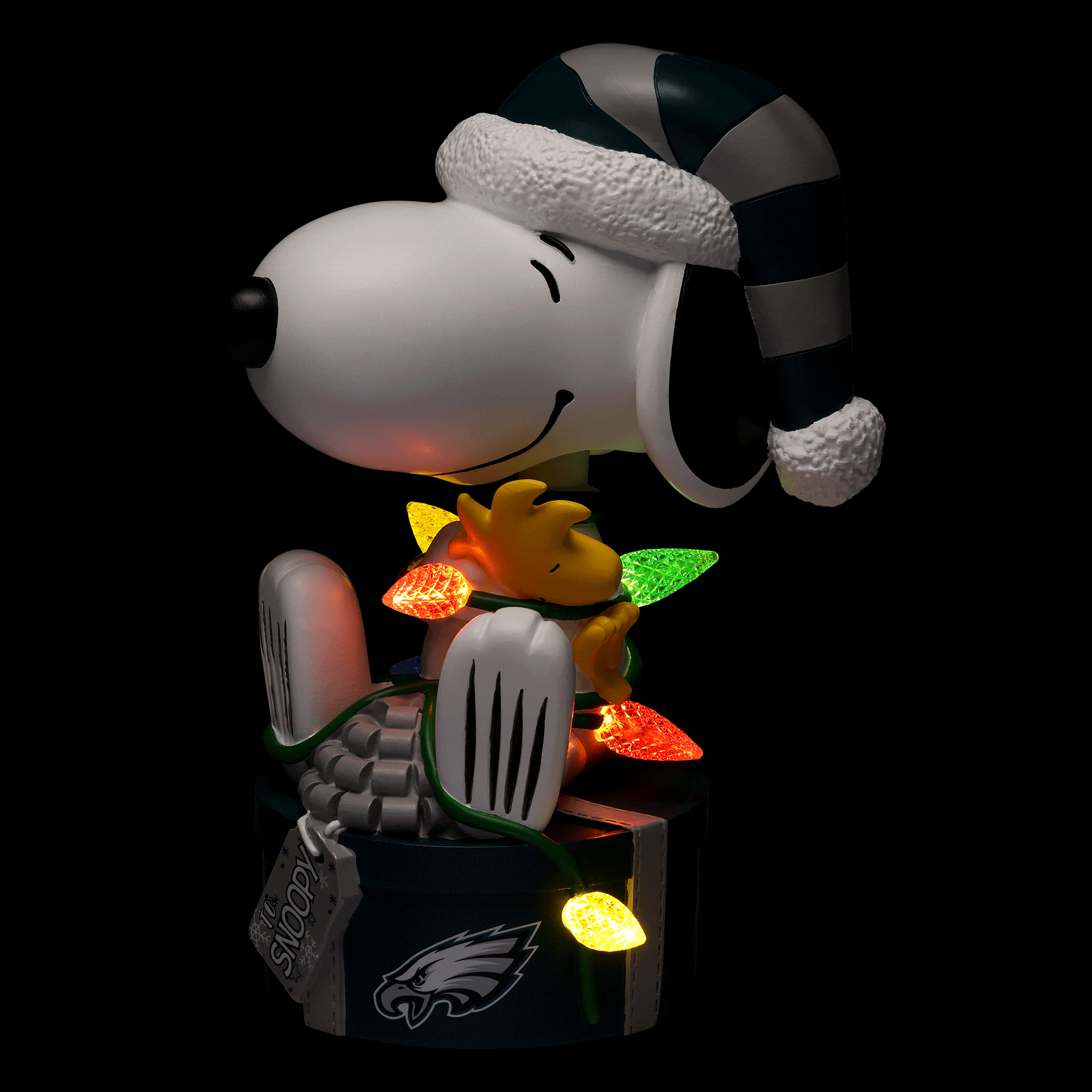 Happy Holidays! ‘Tis the season for family, friends, and fandom. Make every festive moment merry and bright with the Philadelphia Eagles Snoopy & Woodstock Peanuts Christmas Light Up Bobblehead.