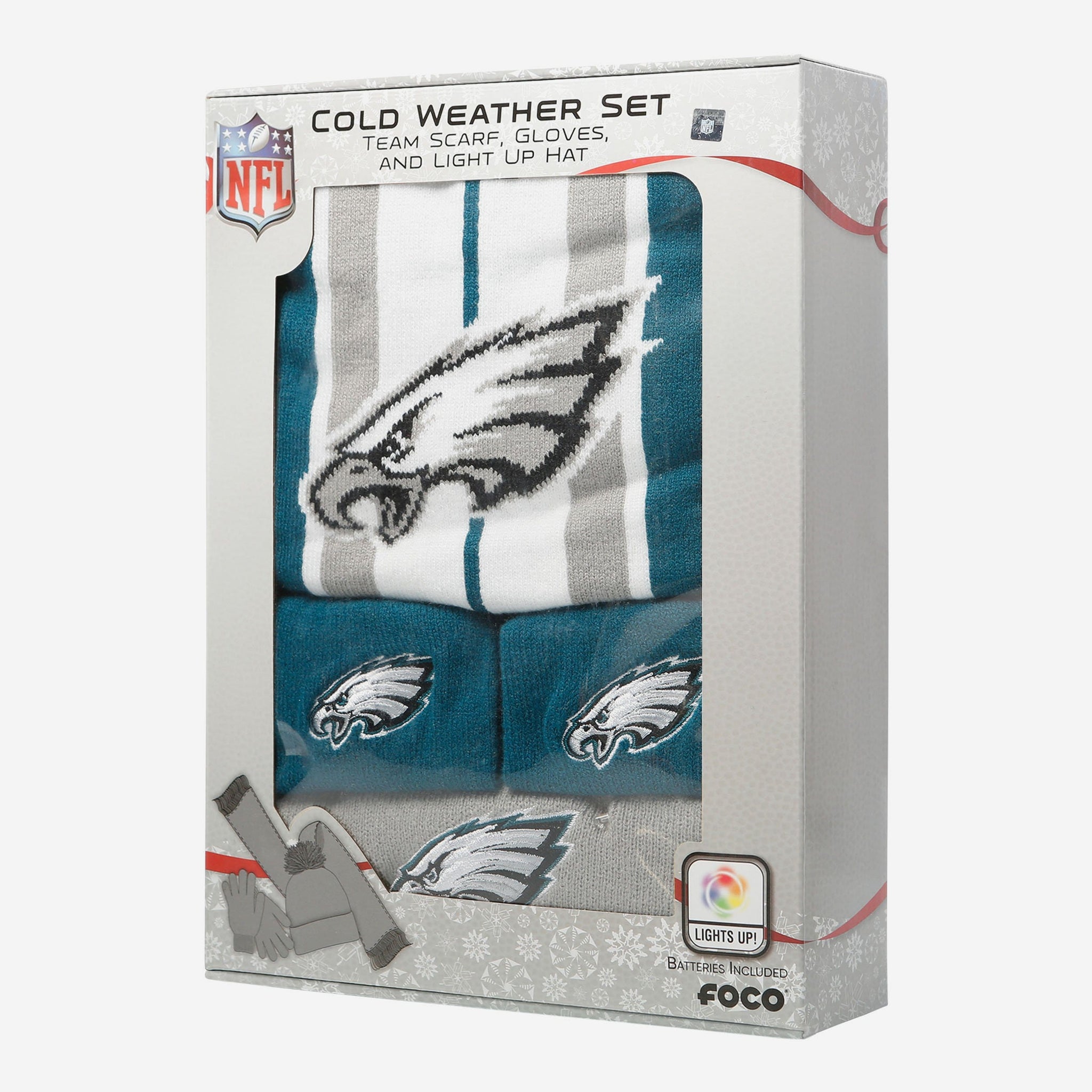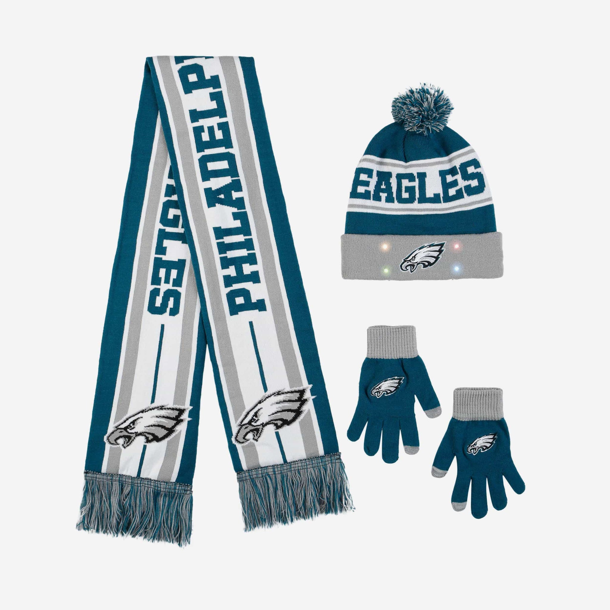 Scarf? Check. Gloves? Check. Light up beanie? You guessed it - Check. Show the snow who's boss with this Philadelphia Eagles Snow Stealer Cold Weather Set!