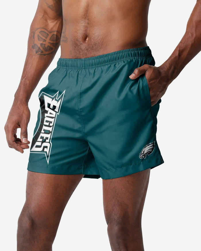 THIS is the summer style you've been craving. Get ready for some fun in the sun by rocking these Philadelphia Eagles Big Wordmark Solid Swimming Trunks.