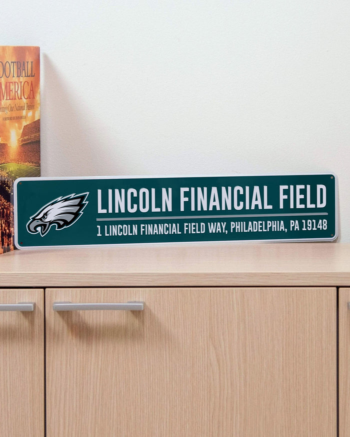 Don't let your eyes deceive you. You may think you're standing outside your favorite stadium before a big game, but it's just your fancave with this Philadelphia Eagles Stadium Street Sign on display. Add some home game fun to your home base.
