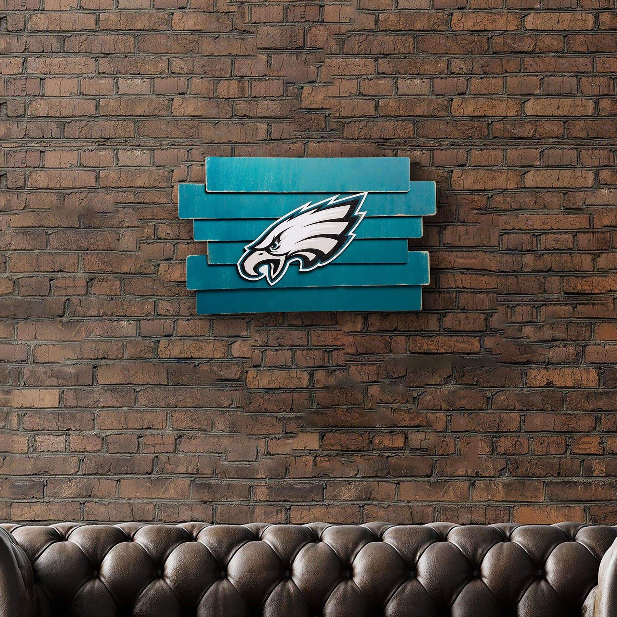 It's time to take your fancave from very good, to MVP status. Hang up this Philadelphia Eagles Staggered Wood Logo Sign and make sure all of your guests coming over to watch the big game know where your allegiances lie.