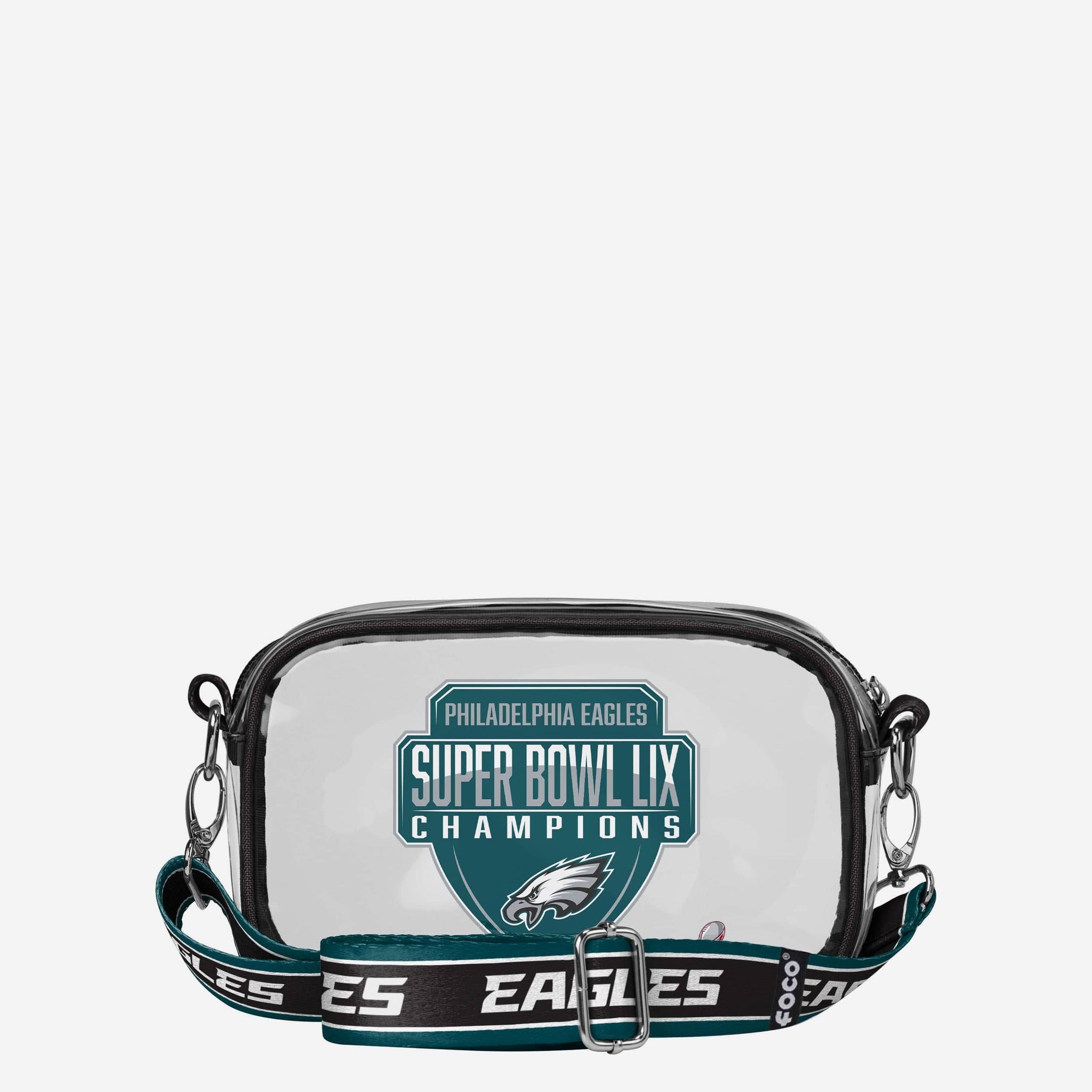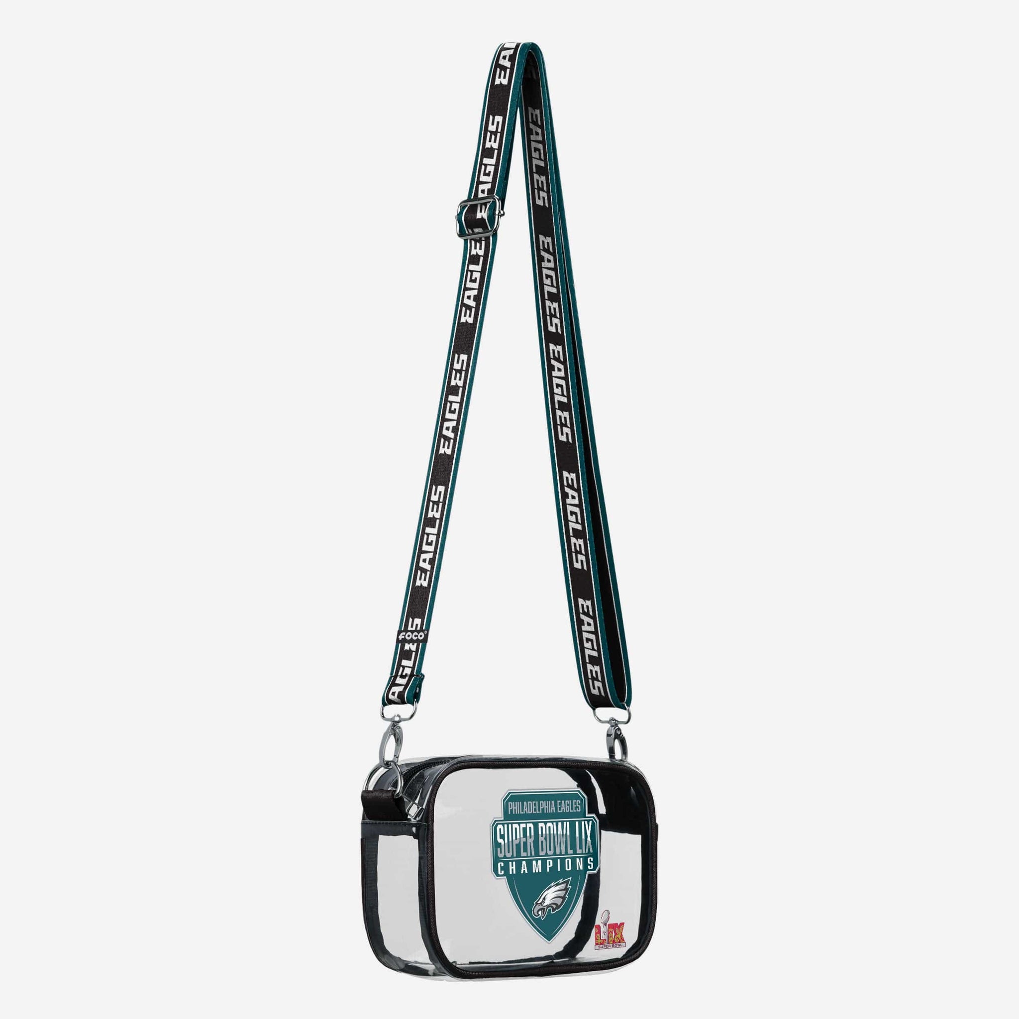 Over your shoulder and off to the game. Whether you're running errands on the town or running the tailgate in the parking lot, this Philadelphia Eagles Super Bowl LIX Champions Clear Team Stripe Clear Crossbody Bag is the perfect way to carry the team like never before.