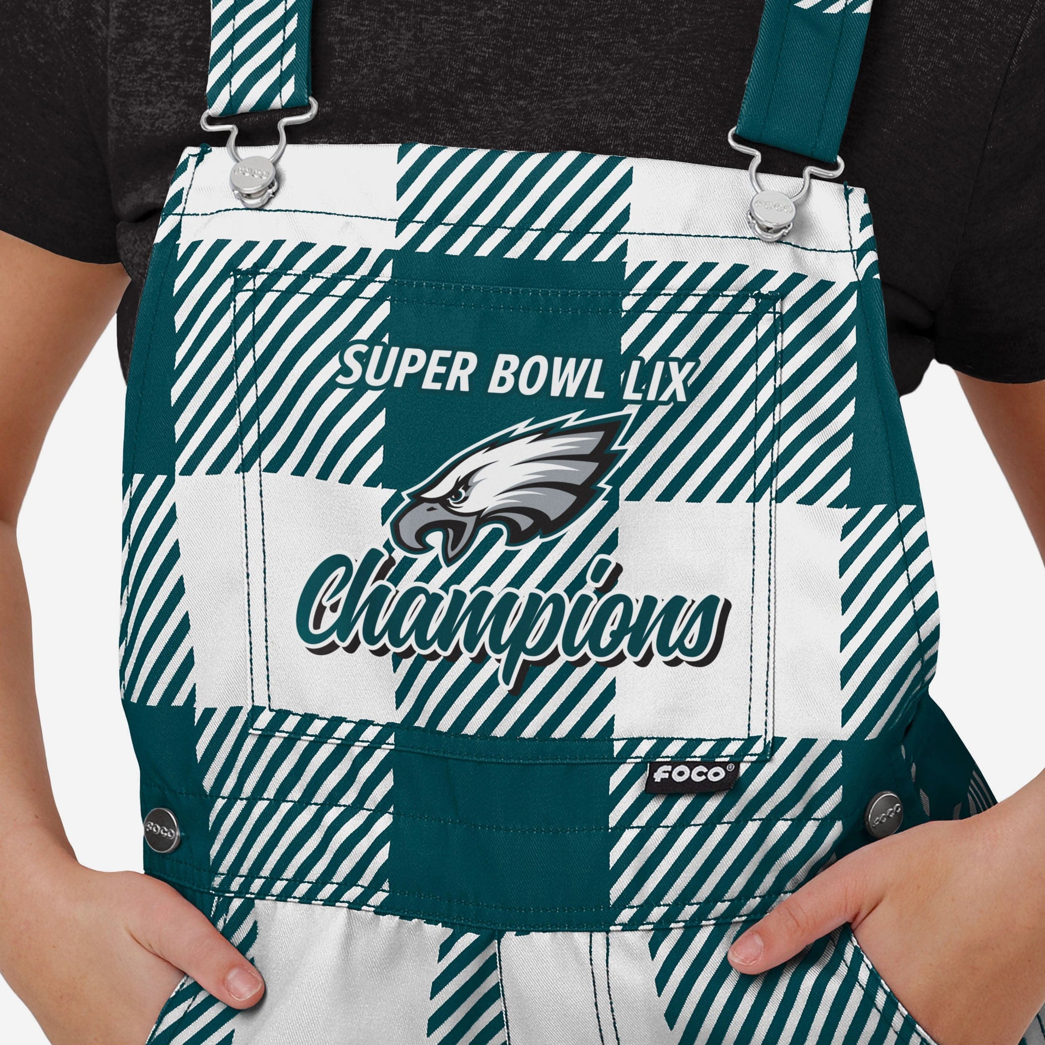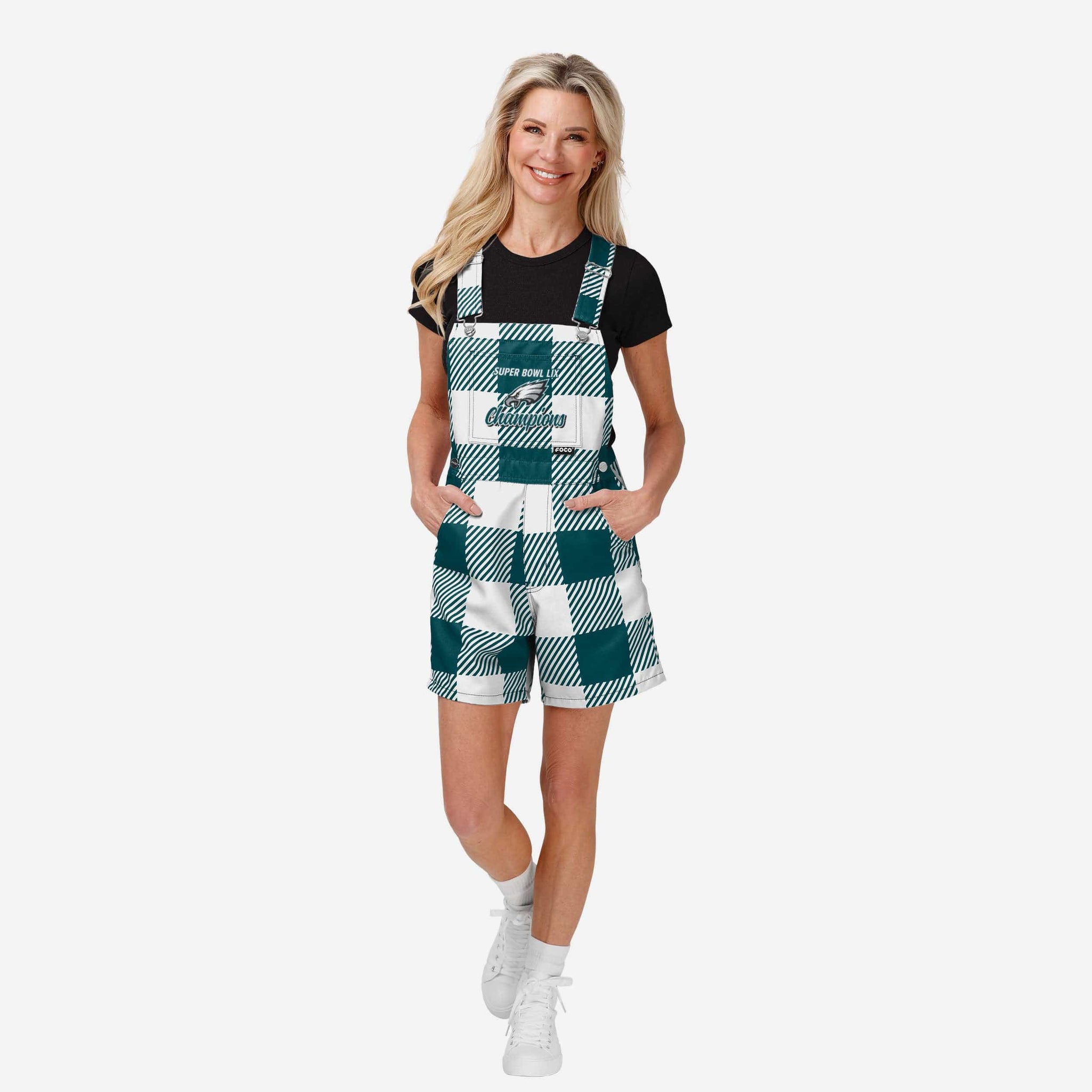Show your team spirit in these stylish and comfortable Philadelphia Eagles Super Bowl LIX Champions Women's Plaid Bib Shortalls. With their all-over team-colored design and bold championship logo display, these overalls are the perfect way to show your support for the Super Bowl winners while showing off some buffalo plaid fashion for a rustic, rural feel.