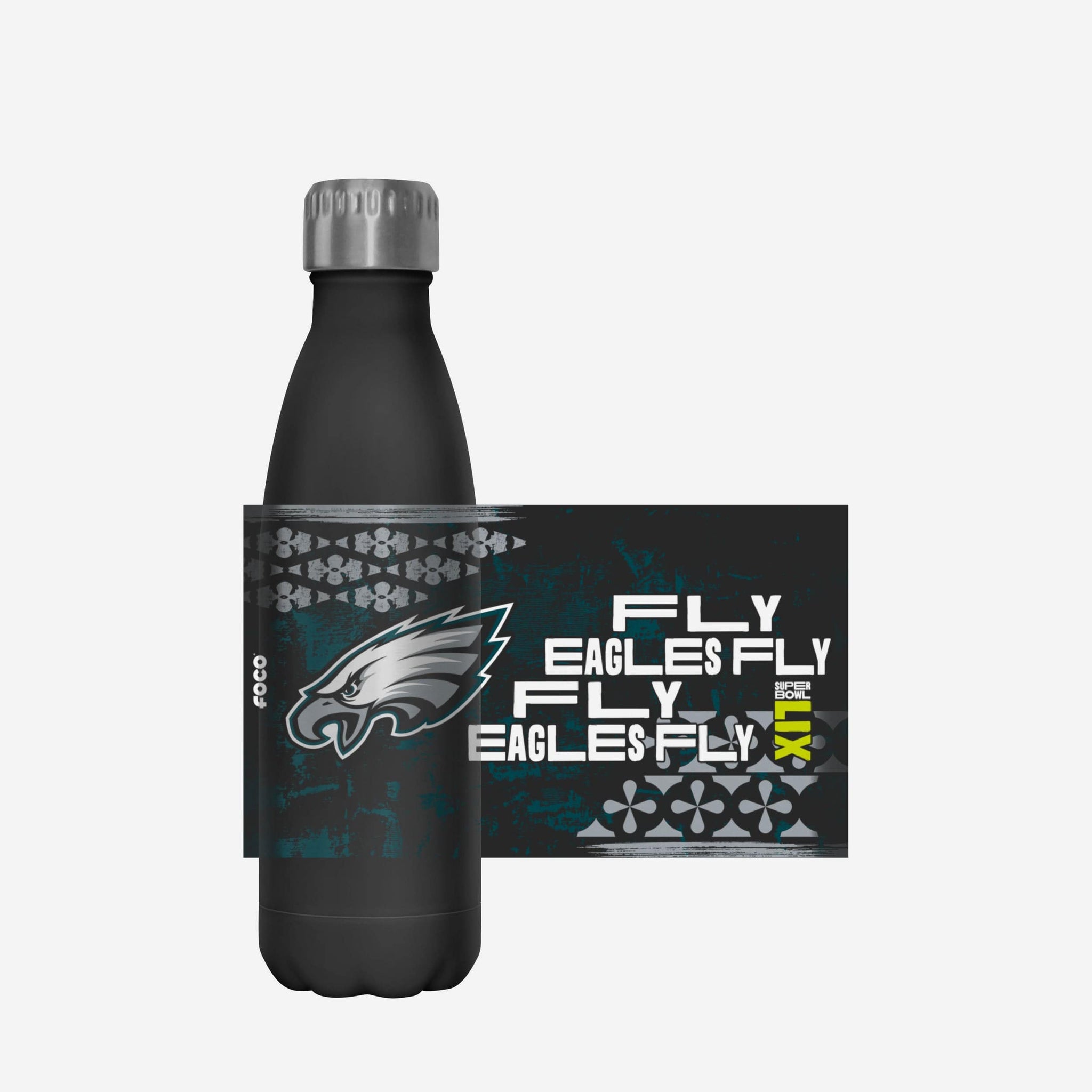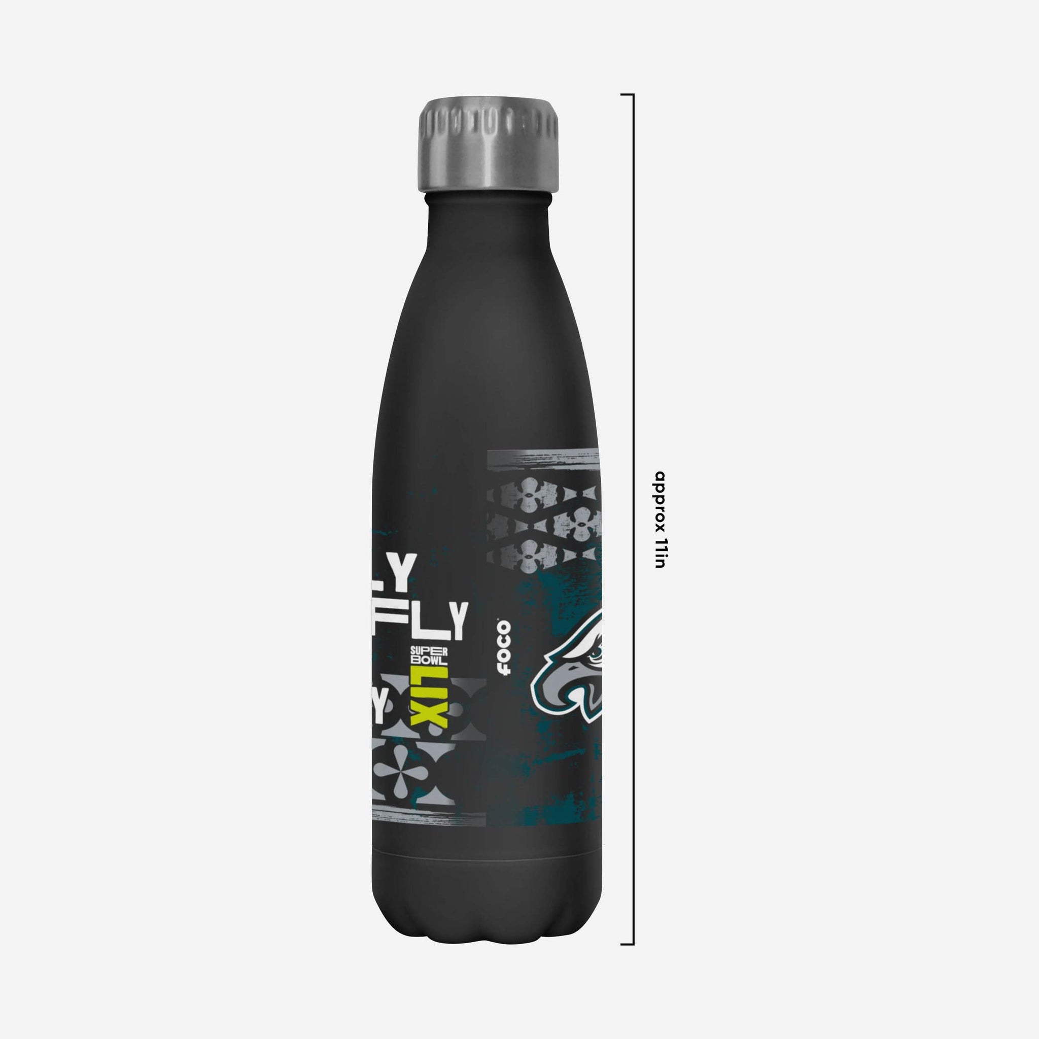 Fly, Eagles, Fly! Prove an E-A-G-L-E-S victory tastes good to the last drop with a Philadelphia Eagles Super Bowl LIX Fly Eagles Fly Black 17 oz. Stainless Steel Bottle.