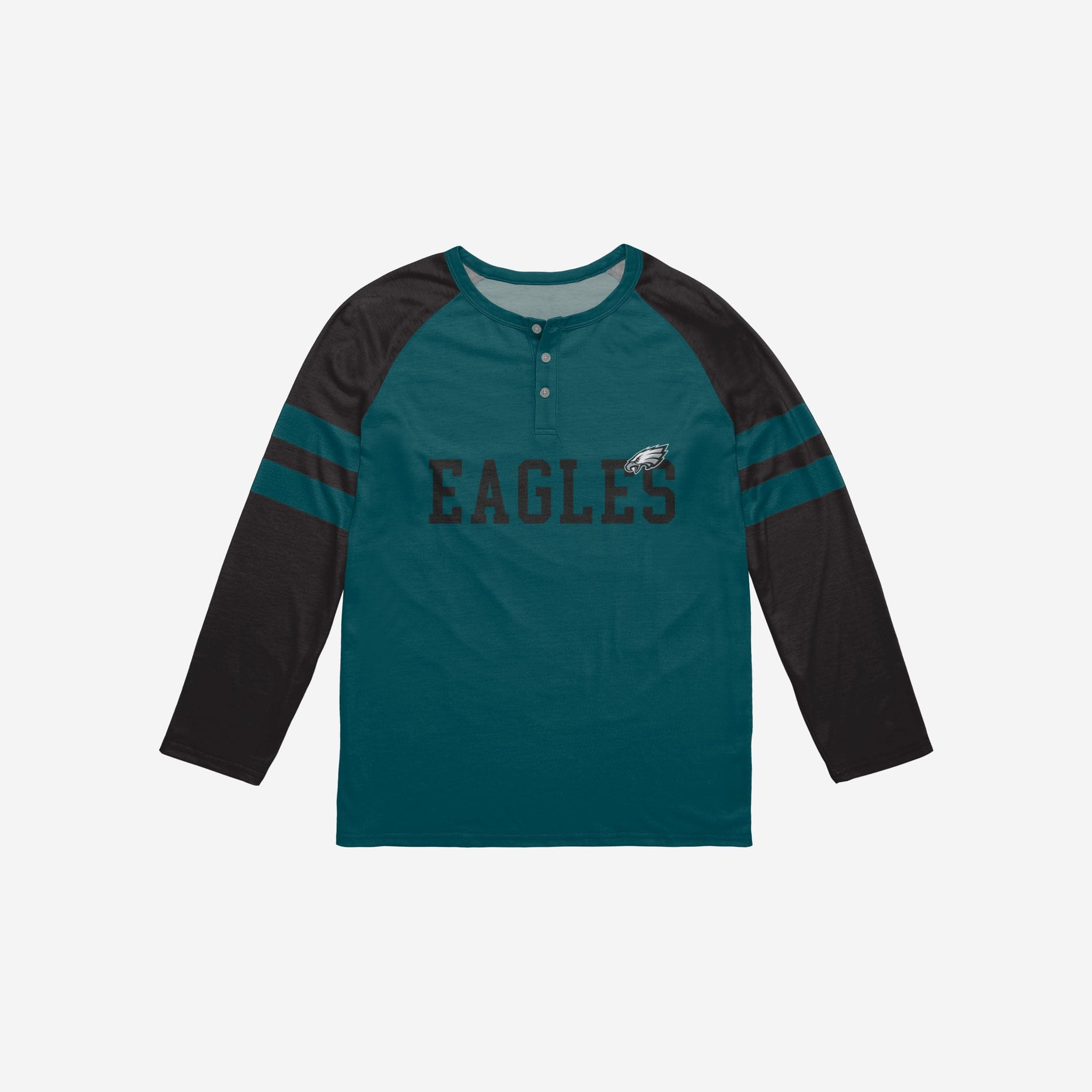 Long sleeves to keep you warm. Sleek style to keep you cool. Bring some sensational style to the game or wherever your team spirit takes you with this Philadelphia Eagles Team Stripe Wordmark Long Sleeve Henley.
