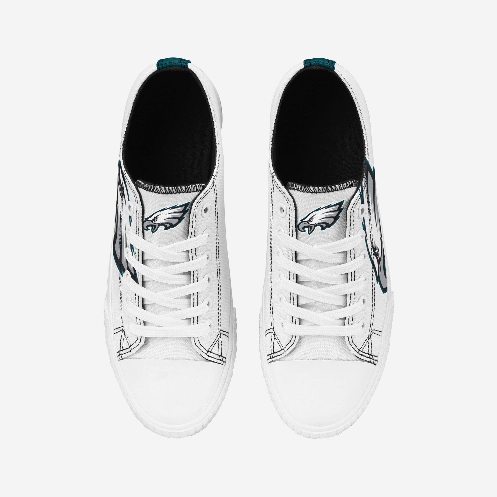 Low tops. High spirits. No matter the final score, you'll always be winning with the Philadelphia Eagles Women's Big Logo Low Top White Canvas Shoes on your feet.