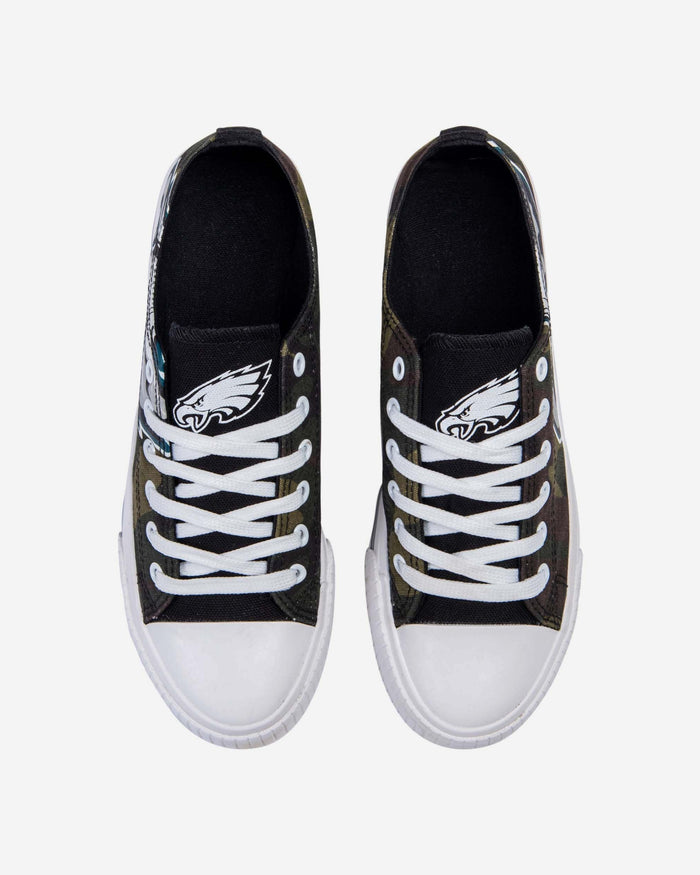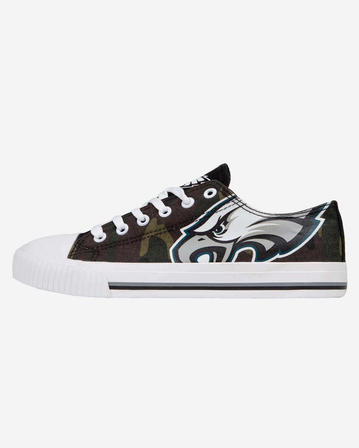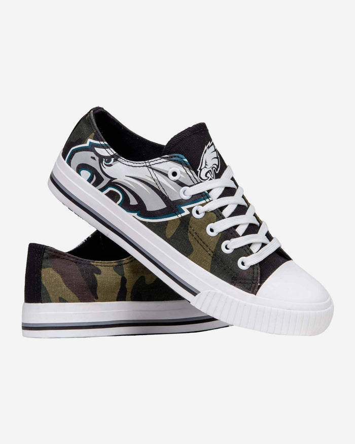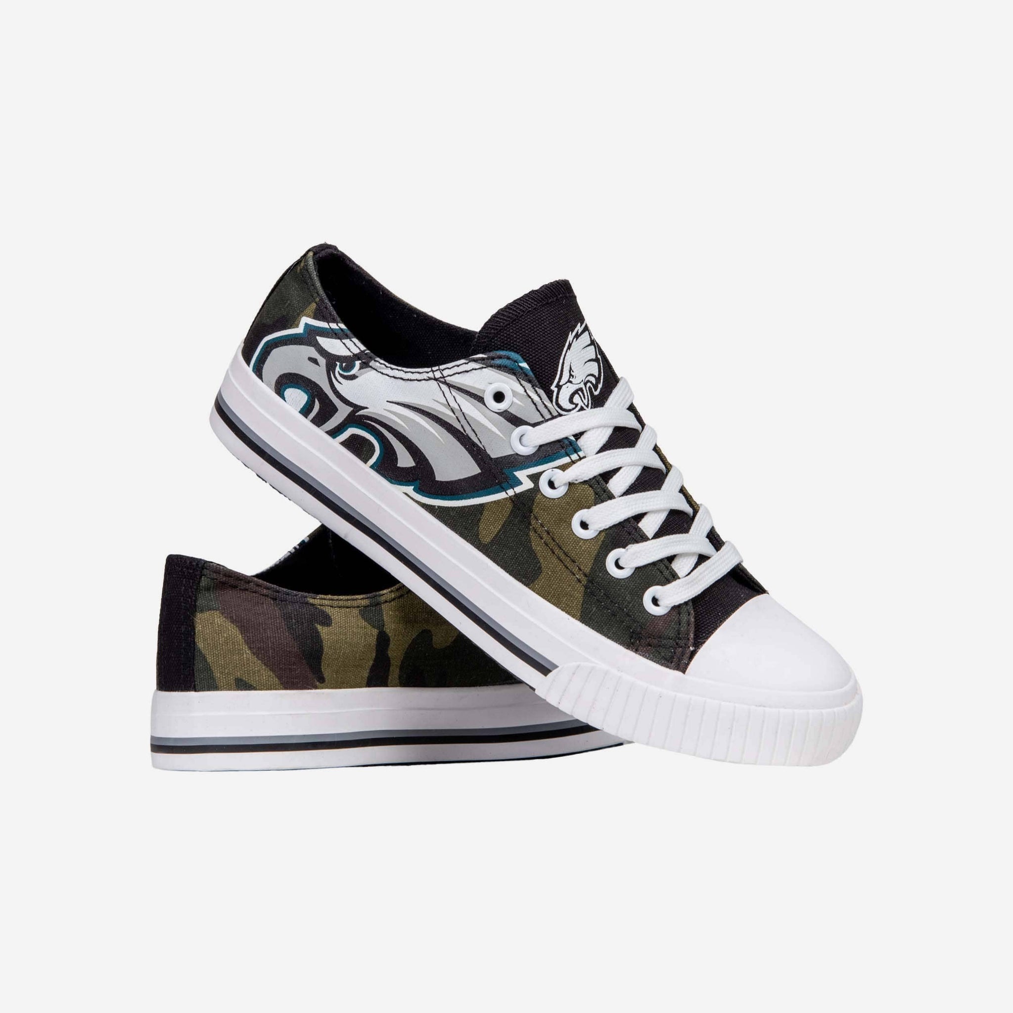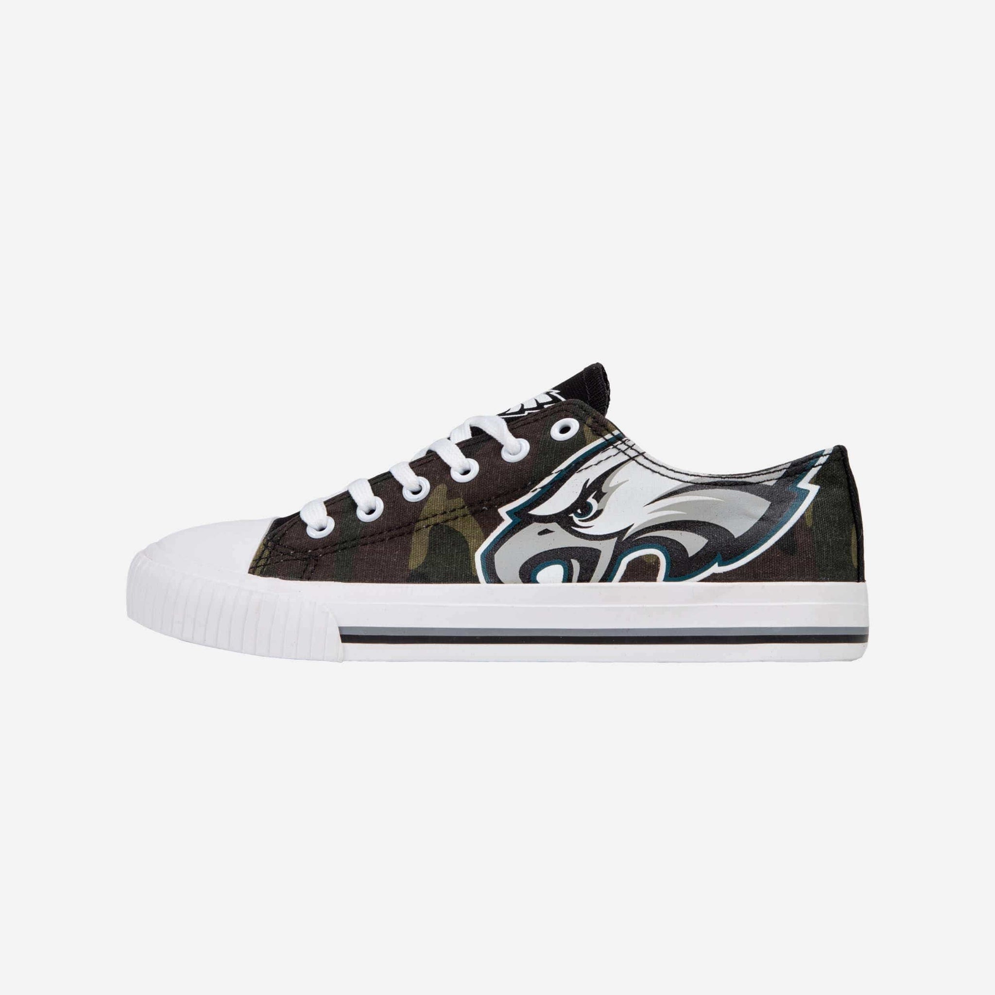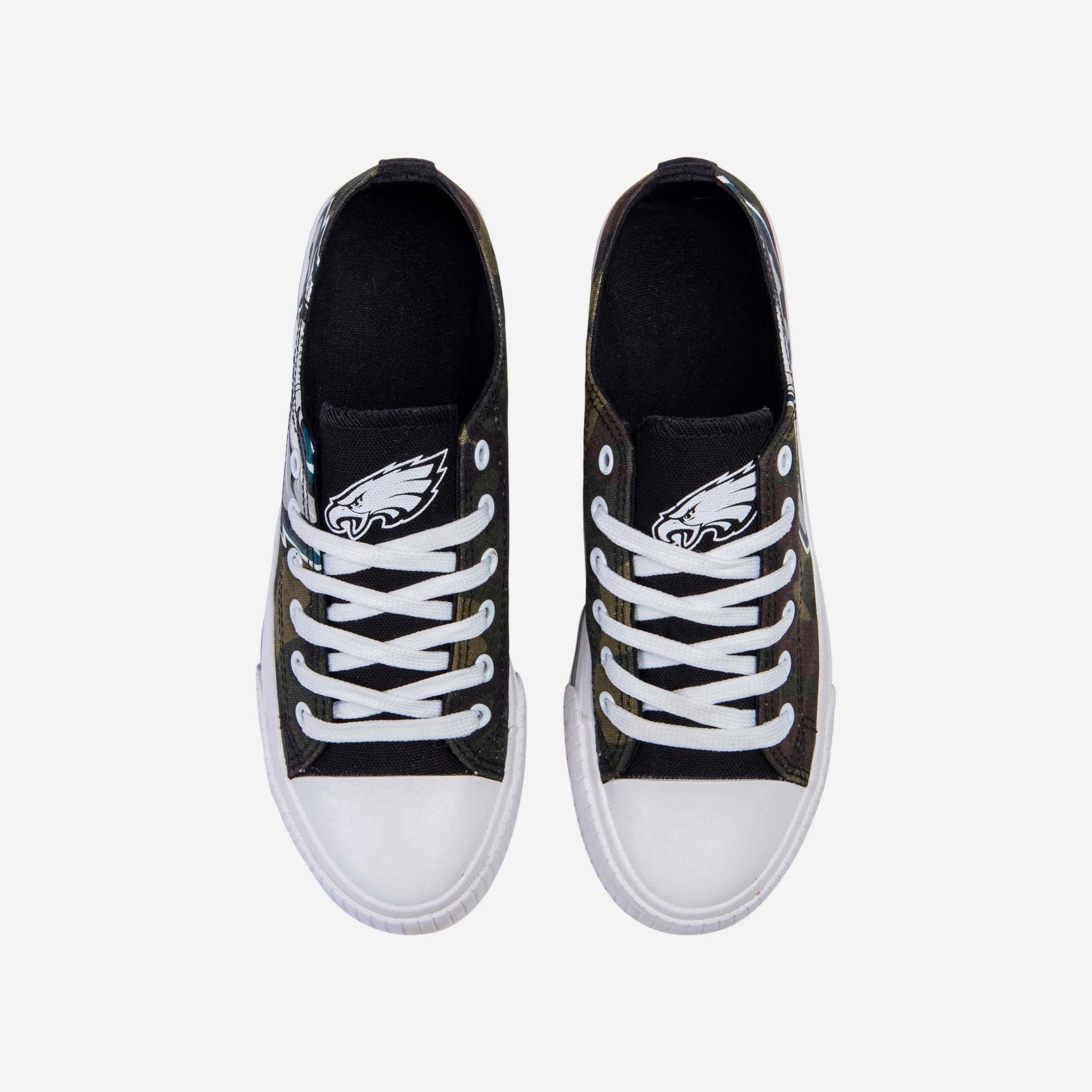 Your fandom is one of a kind. Loud, proud, and passionate. In fact, your team spirit is so bold that even the sleek camouflage design of these Philadelphia Eagles Women's Camo Low Top Canvas Shoes can't disguise it.