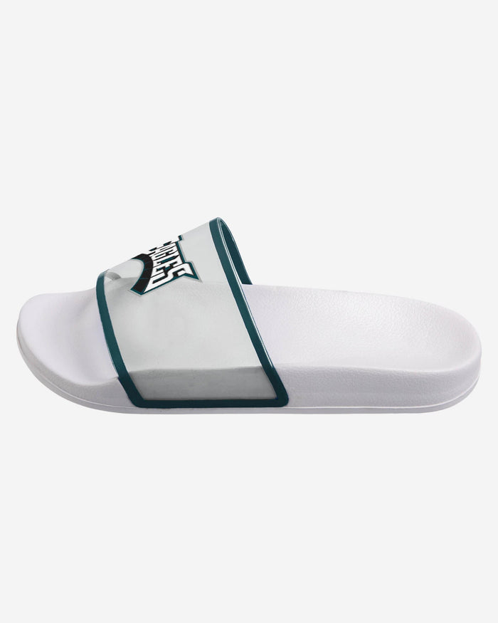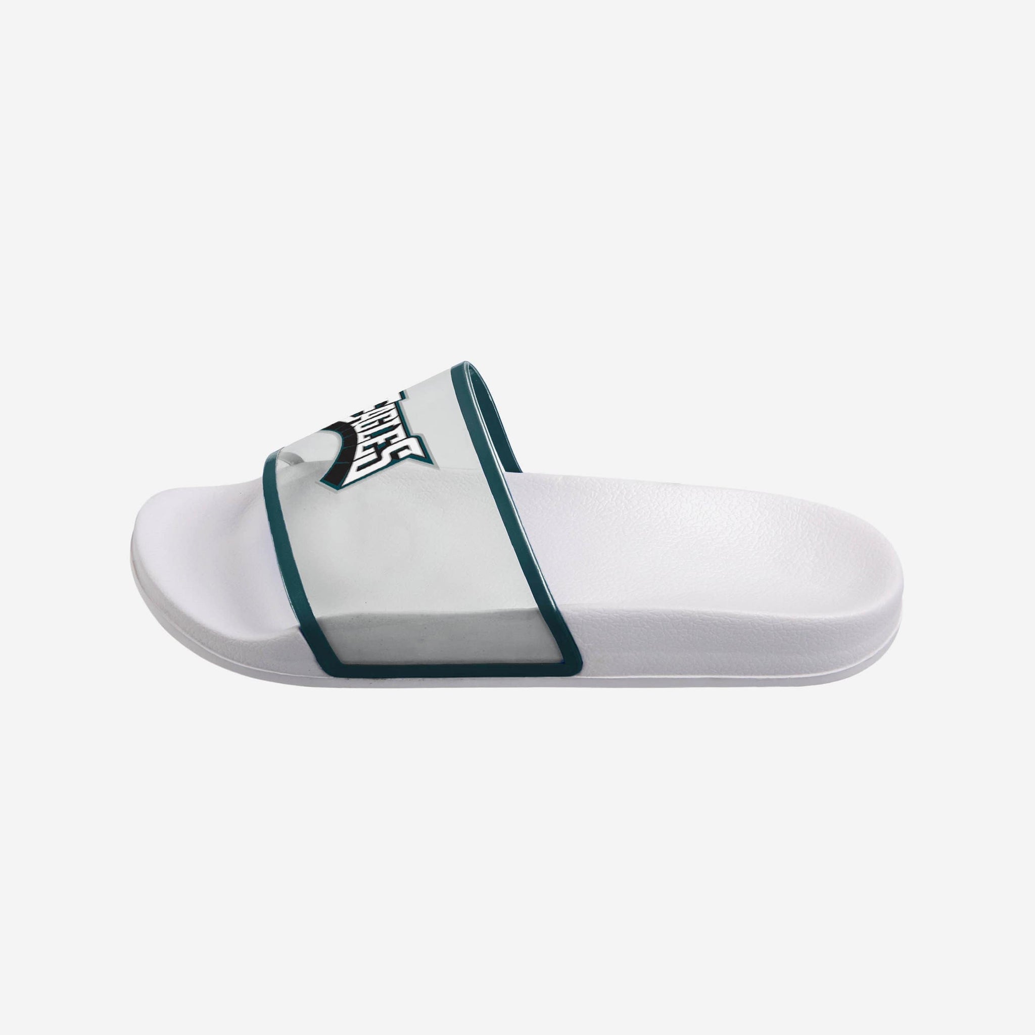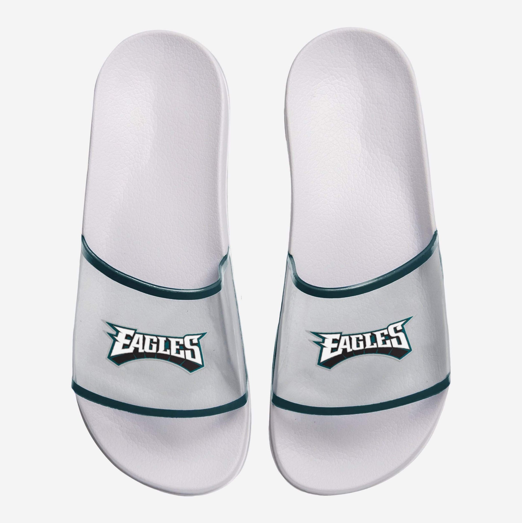 So, you're trying to find the best way to show off your team spirit, and look good while you do it. The answer is clear. Like, literally. As in, these Philadelphia Eagles Clear Wordmark Slide Flip Flops.